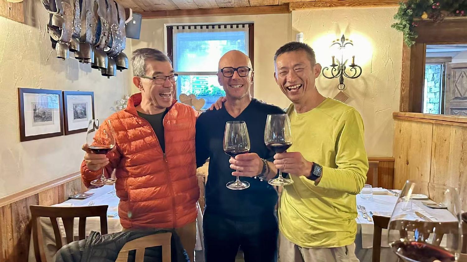 当晚意大利大餐,三只酒杯轻轻相碰,红酒滑过喉咙的美味让三人同时眯起眼睛,继而相视大笑。