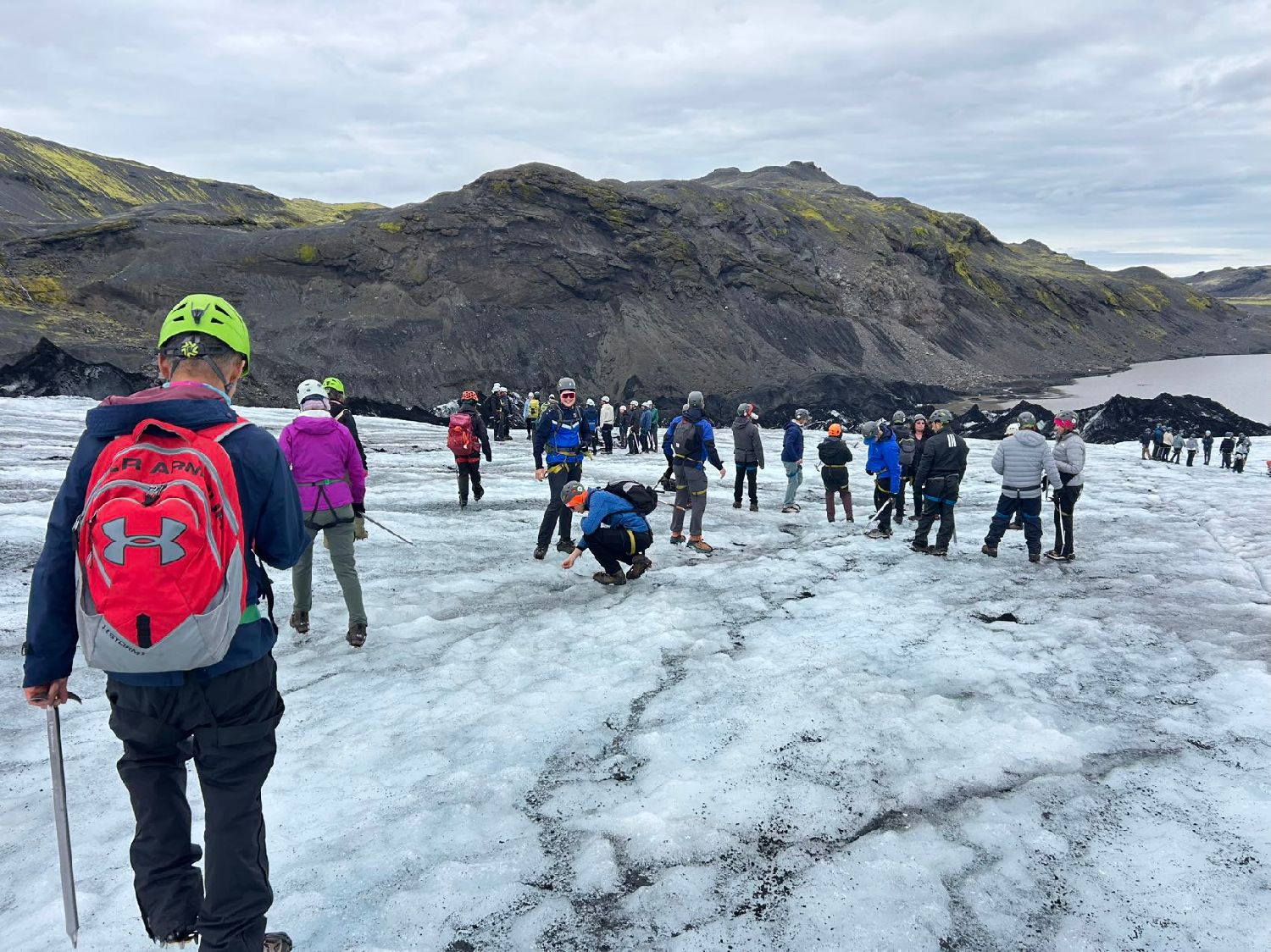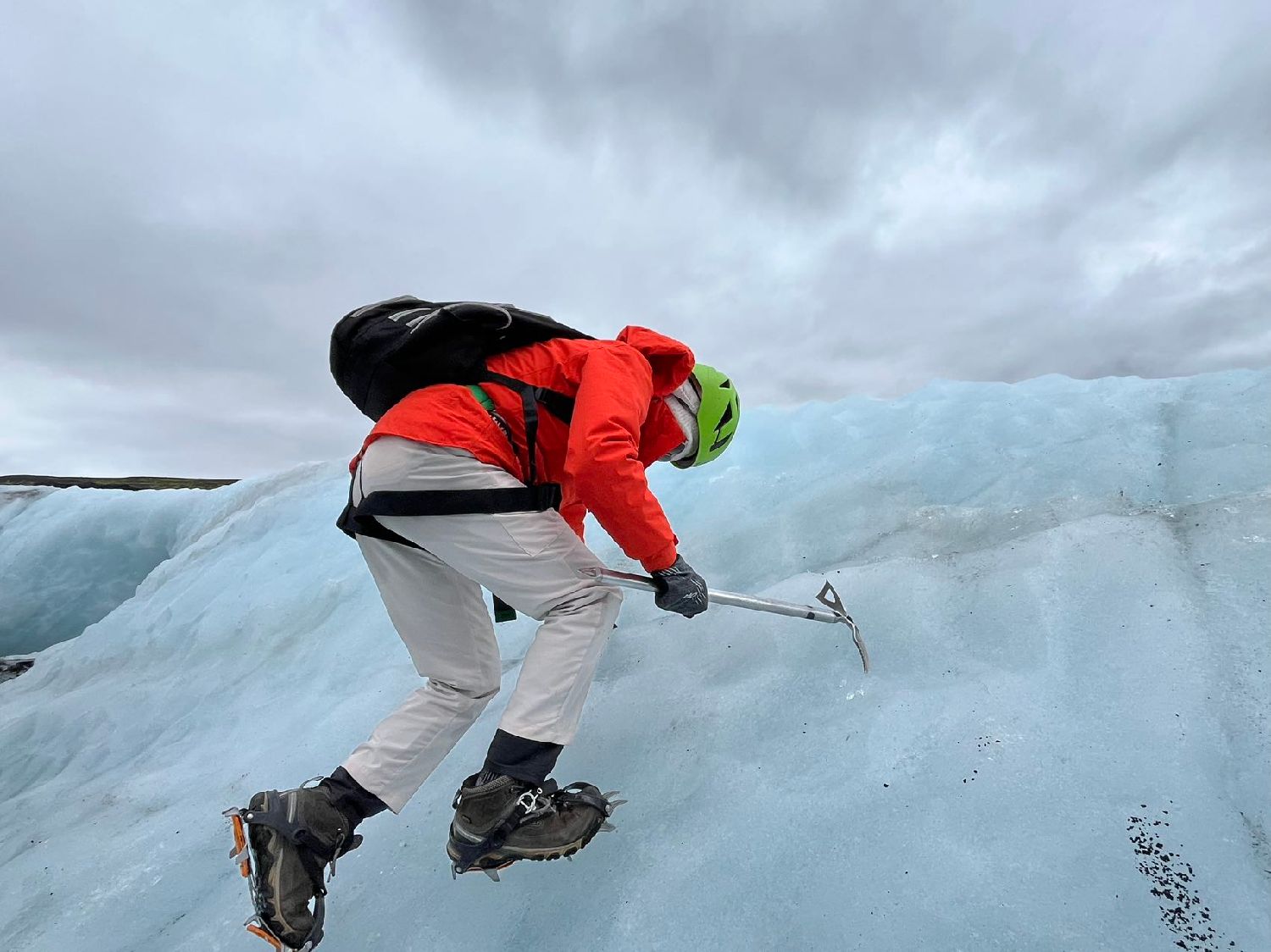 不过,人在冰岛时,对火山的概念仍比较模糊。直到那天参加爬冰川活动,当脚穿冰爪、手执冰镐踏上茫茫冰原时,导游提醒道:我们脚下的火山,已超过五十年的喷发周期;它正在沉睡,但随时可能苏醒。那一刻,我深深感到人类的渺小与脆弱,毁灭或许只在瞬息之间。唯有在心中虔诚祈祷,求上天保佑平安。