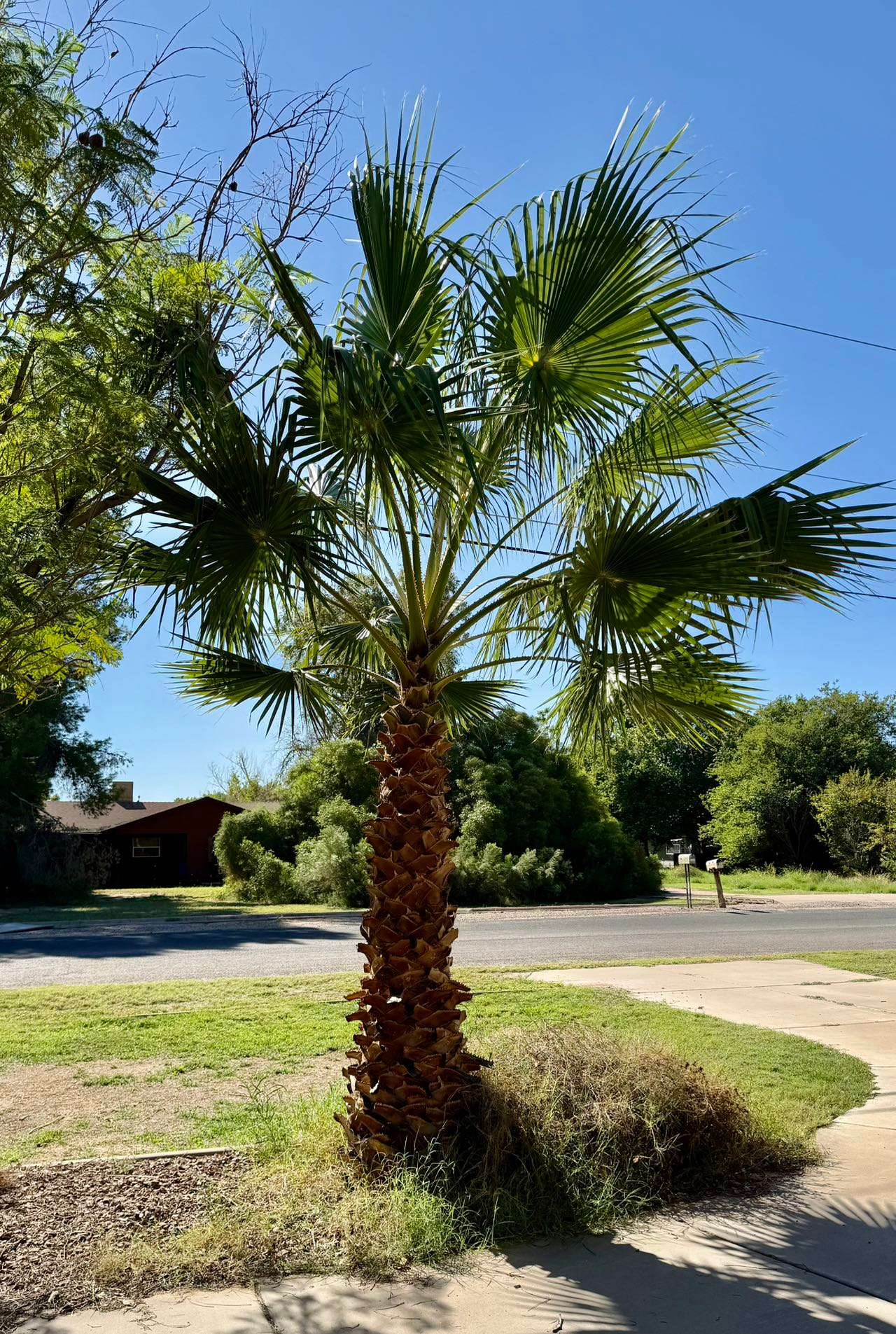 第5头痛的是莫西哥扇棕榈树,现在我们的院子里可能有一百棵,绿绿的叶子,大概6寸长。如果不消灭掉,将来也会长得高高大大。这些扇棕榈树的种子应该是随着灌溉水飘游过来的,在院子里分布得非常均匀。
