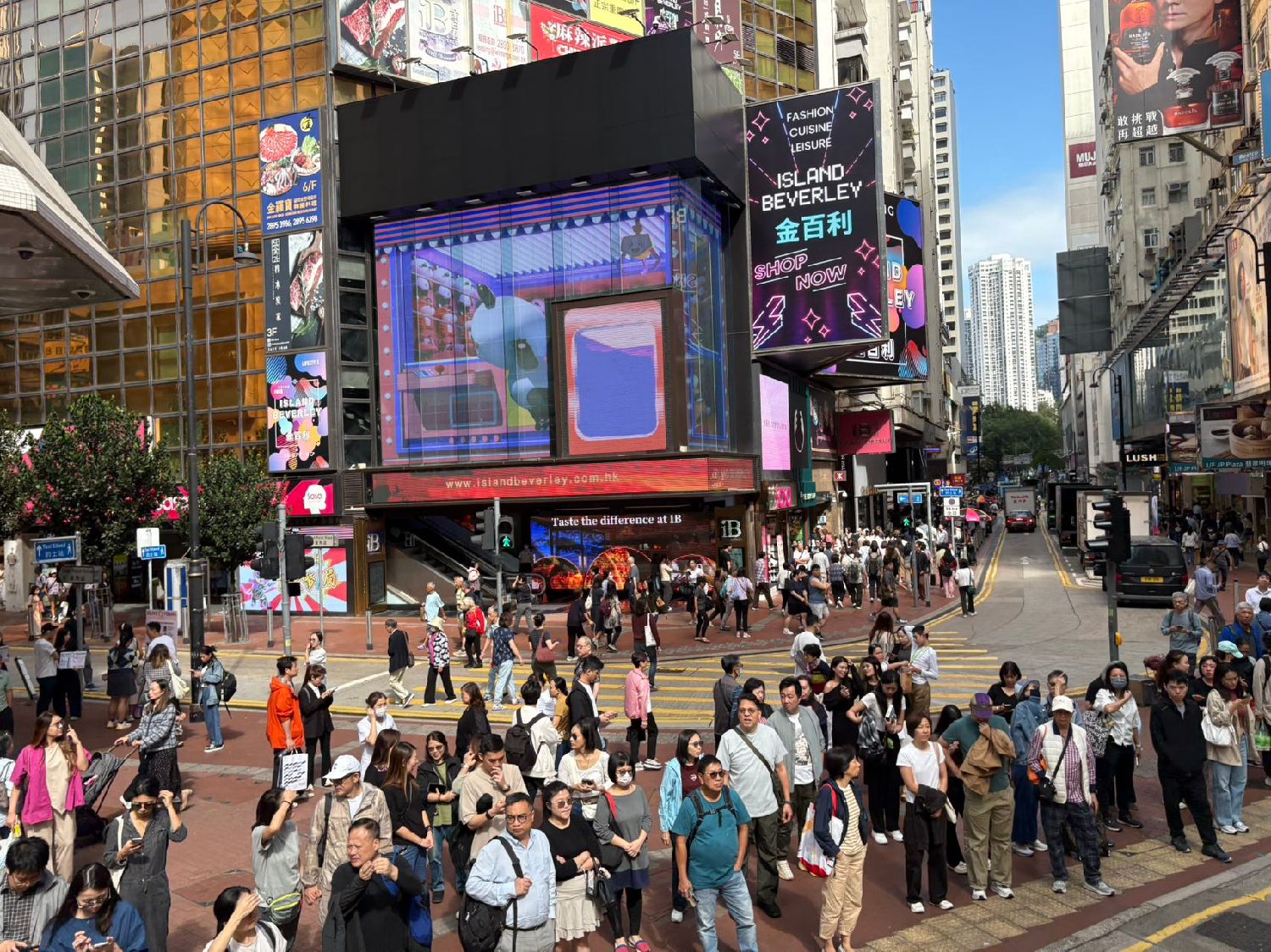 当我们转乘红线和蓝线,感受就会大不一样,巴士会经过人口密集的繁荣街道,如香港𡷊的铜锣湾、湾仔、兰桂坊,时代广场;九龙城的油麻地、天后庙、旺角等等。这些地方行人多,道路较窄,楼房也显得夹迫,这里是大多数香港人真实的生活环境,以及如过江之鲫的游客的购物天堂,居住在山顶和海湾的富豪们很少会来到这些区域。游客如果只从这里来认识香港,只能是管中窥豹略见一斑而已。