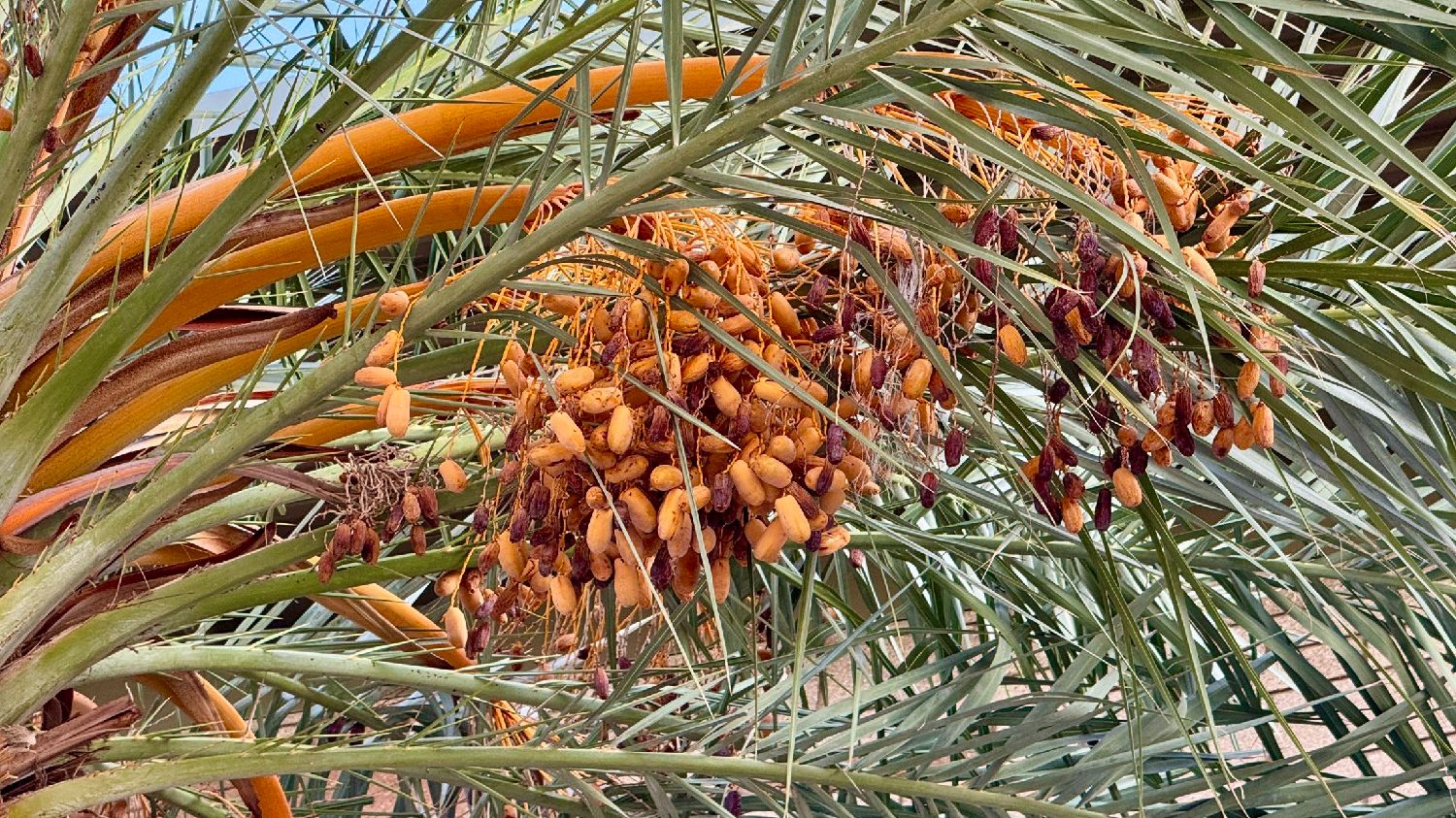 回到我们在退伍军人节看到的椰枣树。 据工作人员透露,这几棵 椰枣树是2020年种的。今年是第一次结果。 当时从地上捡了几颗椰枣, 真的很喜欢它的味道。