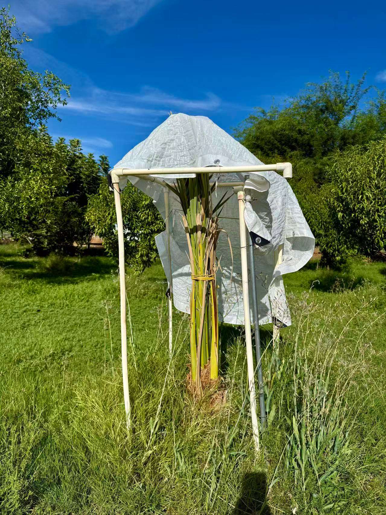 今年三月去果树协会参加活动时,又尝到了椰枣。有个会员带了一株特别大的椰枣树苗。叫价$250。 之前我和卖椰枣的会友聊过很多。他的椰枣树长得特别高大挺拔。 每年要人工授粉,用网子保护果实。 要在很高的梯子上操作。 加上今年元月份我曾从梯子上摔下来过,所以感觉太难了。
