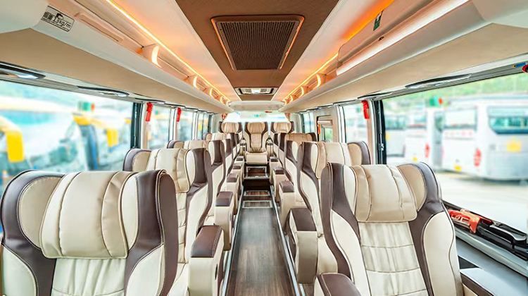 “上车睡觉”,现在的高级的旅游车一排只有两个或三个宽阔的坐位,还可以倾斜145度,很方便倒时差的旅客休息。