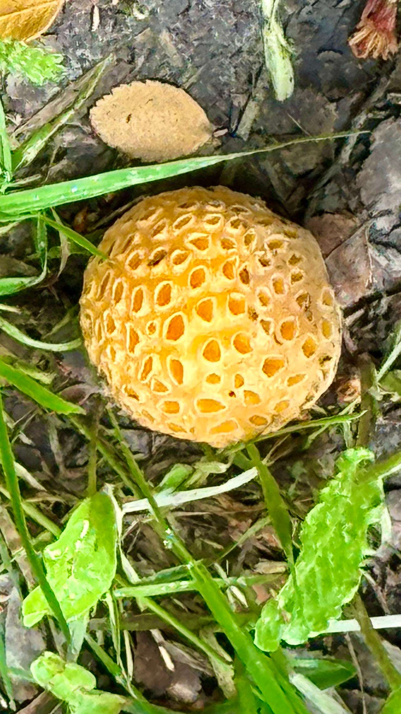 咦, 怎么还开着橙黄色的球形的花。 问了导游才知道这个树叫做Beech。 那一团团的像鸟巢一样的东西叫做Chinese Lantern中国灯笼. 而那些黄色的小球状的东西其实是一种叫做Indian bread 印第安面包的蘑菇。