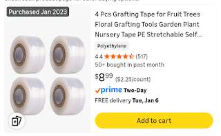 关于嫁接的技术,各位感兴趣者,可以从YouTube上找几个专业视频看看,也可以找文章读,他们的技术比较专业。这里只着重介绍嫁接用的塑料带。
