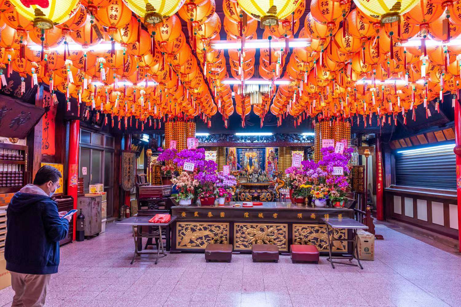 庙里的陈设——菩萨、木雕、龙柱、供桌——静静地守着岁月;庙外却是车水马龙、机车呼啸。