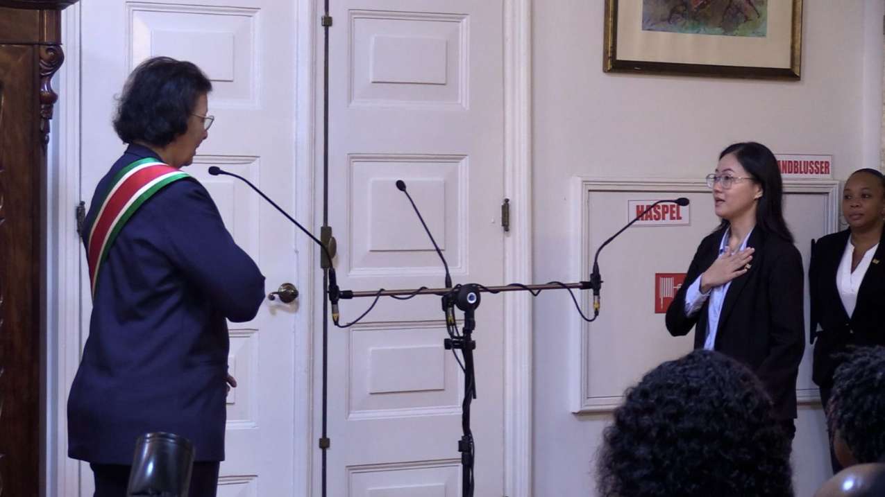 华裔李静宜在完成外交学院培训课程后,于2026年3月13日在总统府向Jennifer Simons总统宣誓就任苏里南驻中华人民共和国特命全权大使。