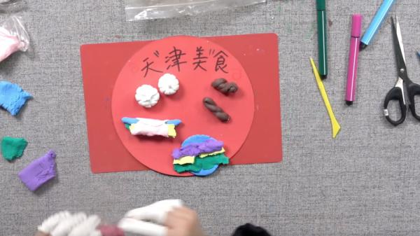 内景老师赵雪莹带着同学们了解了天津的地理位置与饮食特点,介绍津菜“河海两鲜”的烹调特色,了解津菜独特的烹饪技艺。在内景老师的指导下,同学们完成了手工作品。