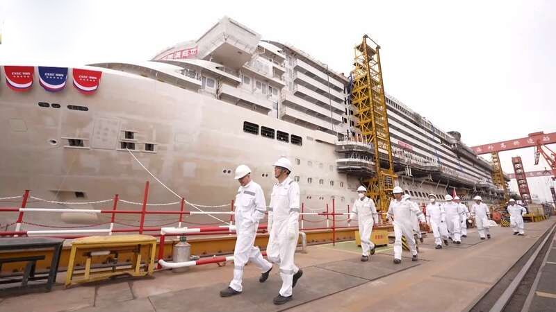 按计划,第二艘中国国产大型邮轮将在2026年5月出海试航,计划2026年年底交付。(图片来源:大陆央视新闻客户端)