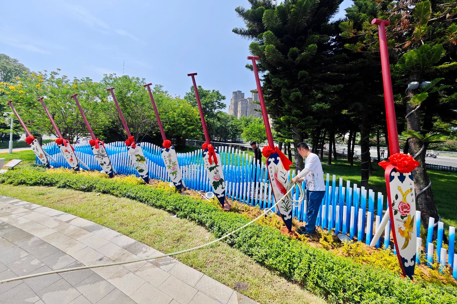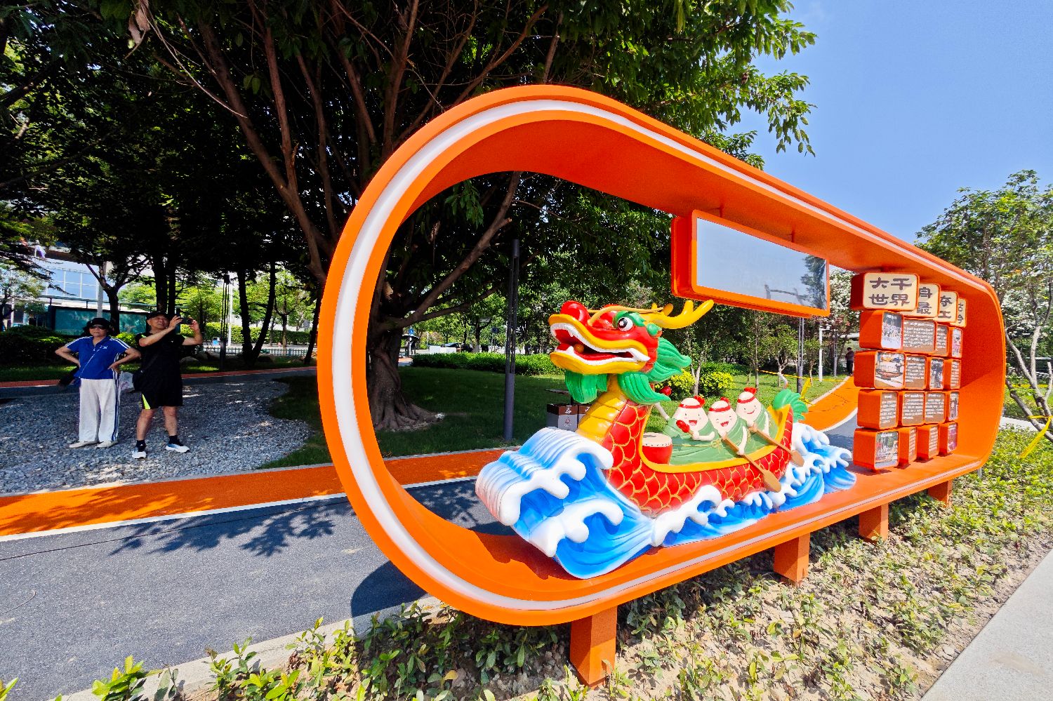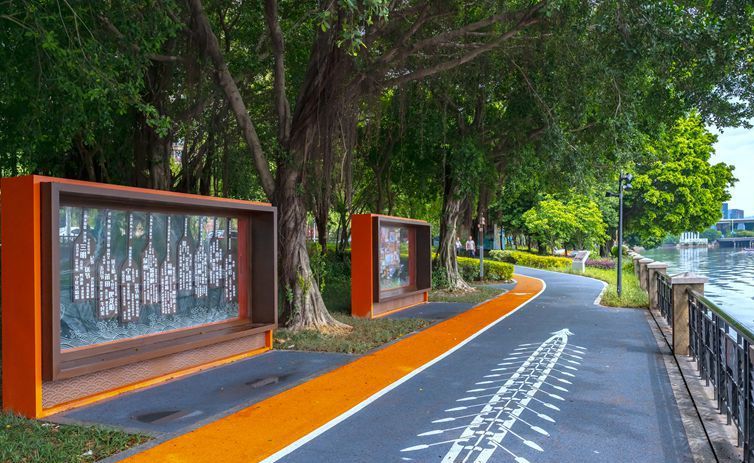橙色和蓝灰色,是传统中国龙形象的龙鳞色彩,它们也是福州龙舟主题公园的主色调,装扮了绵延近1.5公里长的漫步休闲道。(图片来源:福州新闻网fznews官方微博)