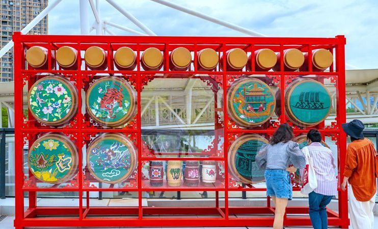 民众在位于仓山区浦下河的福州龙舟主题公园内游览。(图片来源:福州新闻网fznews官方微博)