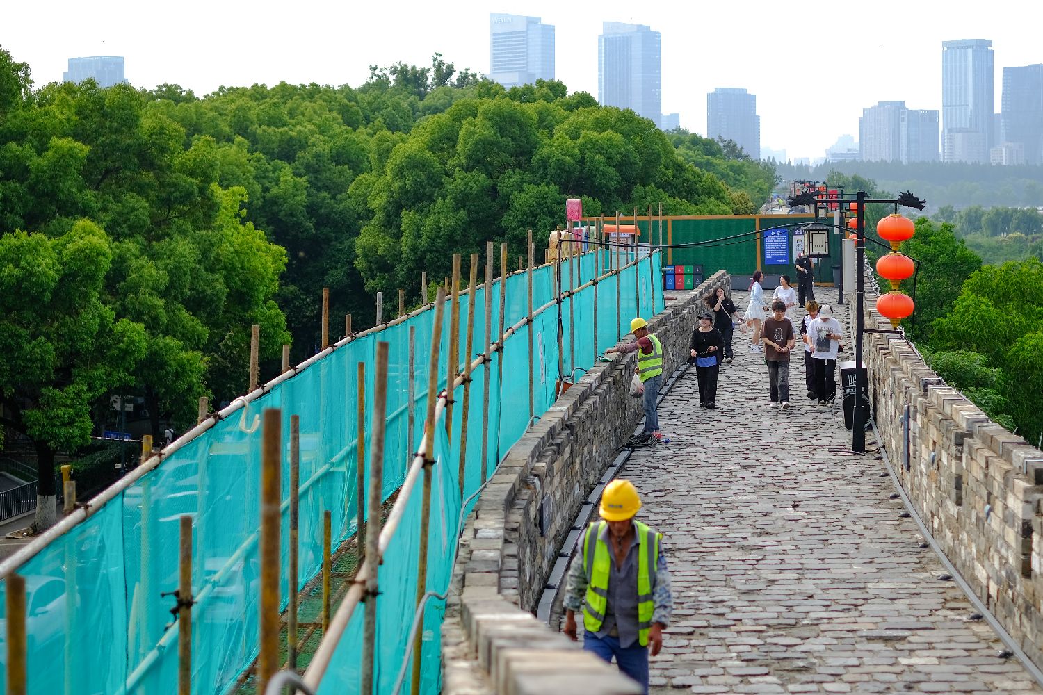 江苏南京明城墙解放门段围挡施工。
