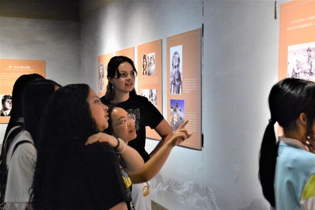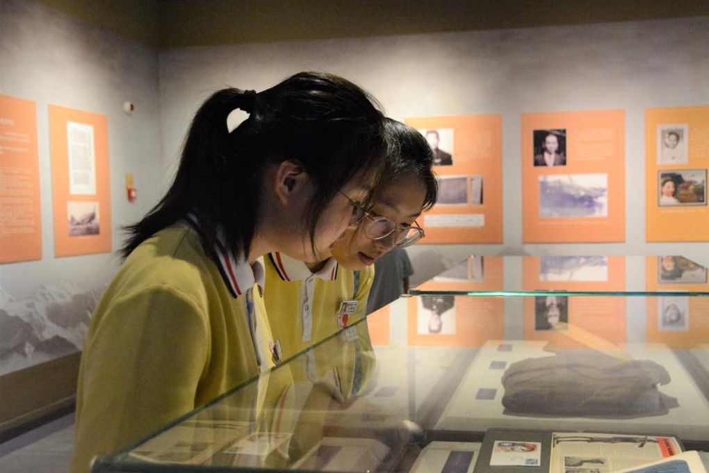 开幕式中还举行了连江一中“飞虎队友谊学校”授牌仪式,友谊的接力棒在青年手中传递,“飞虎队友谊学校”将成为传承历史、播种友谊、启迪未来的重要平台。图为观展学生。(图片来源:福建东南网)