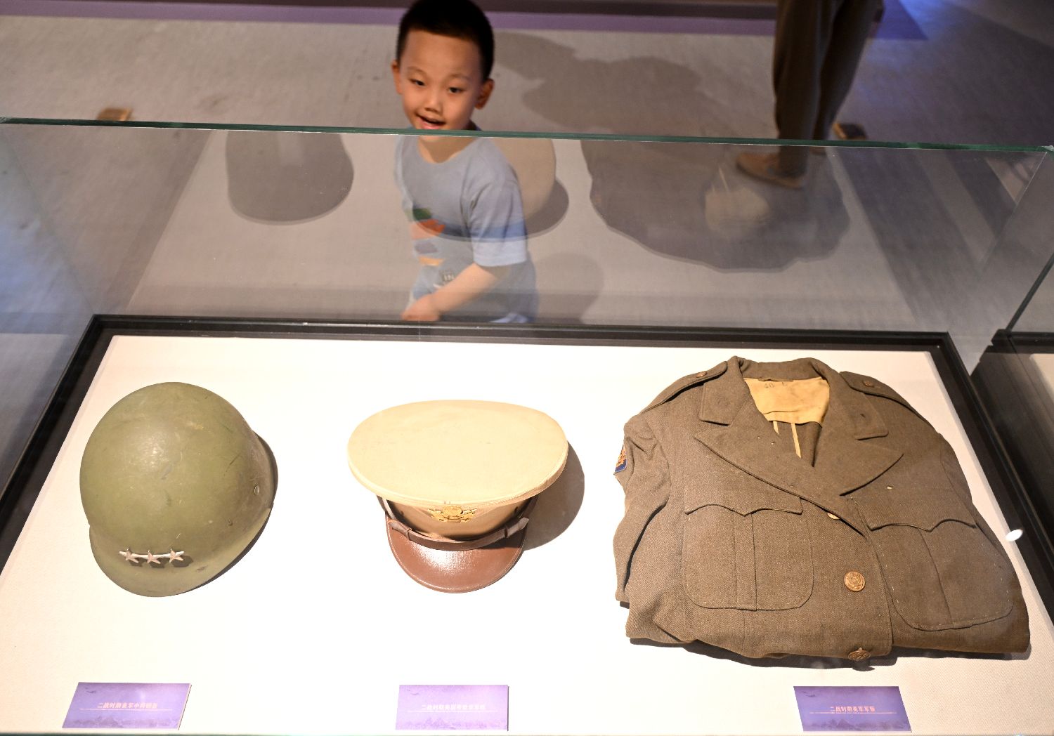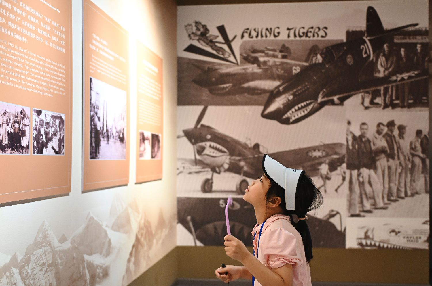 展出的飞虎队队员的服饰吸引小朋友。(图片来源:中新社)