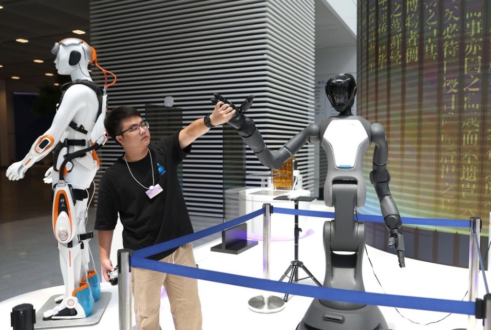 工作人员调试机器人。(图片来源:北京《中国日报》)