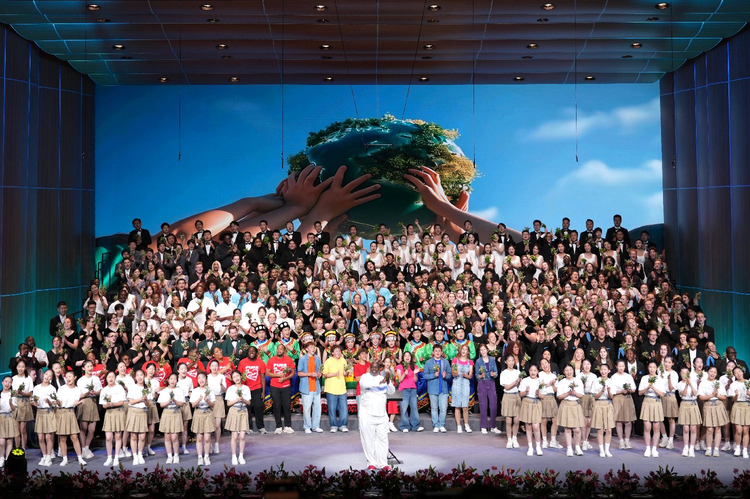 中美青少年合唱《和平颂》。