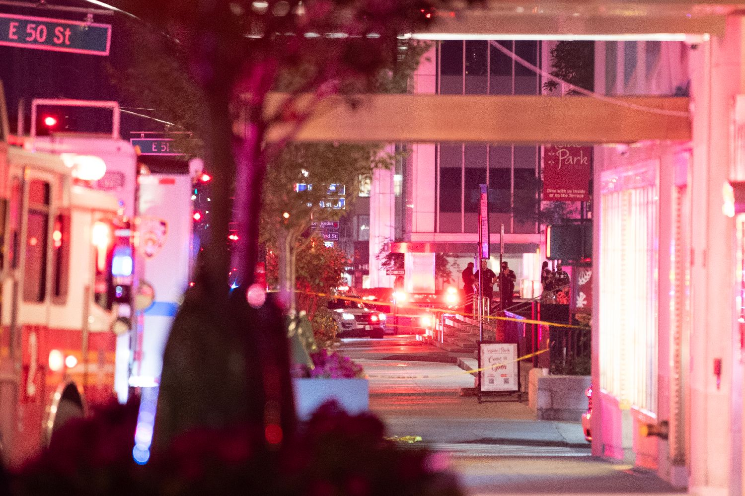 公开信息显示,总高44层的公园大道345号大楼是黑石集团和美国职业橄榄球联盟总部所在地,知名会计师事务所毕马威和美国银行等也在此办公。图为在枪击事件现场工作的警方人员。