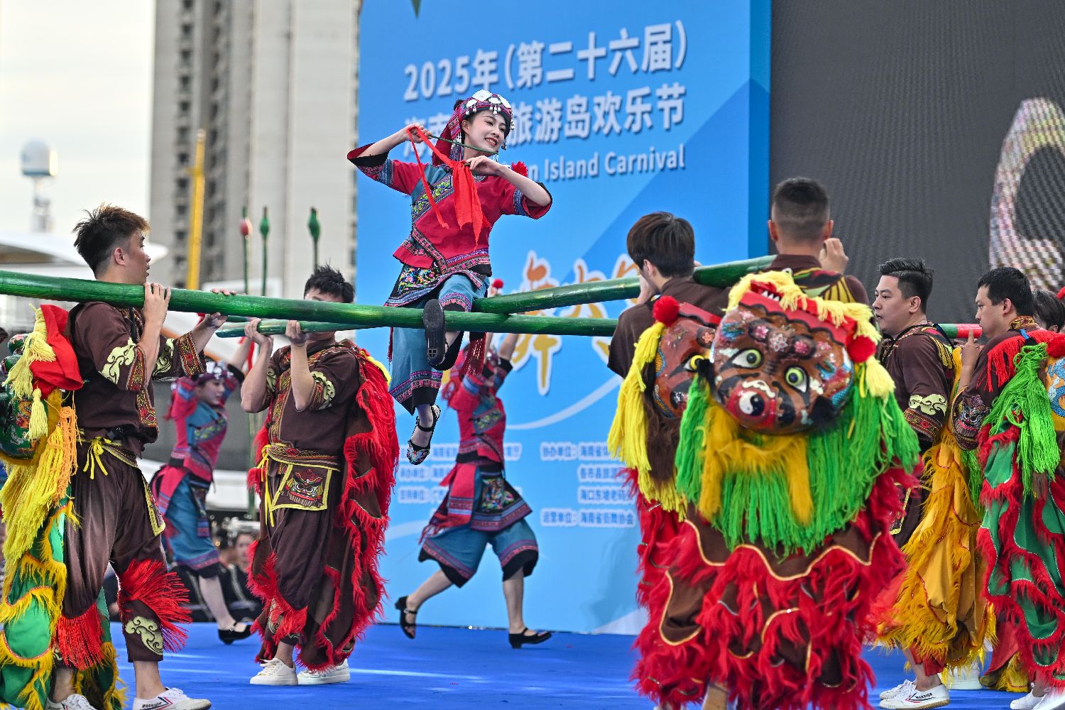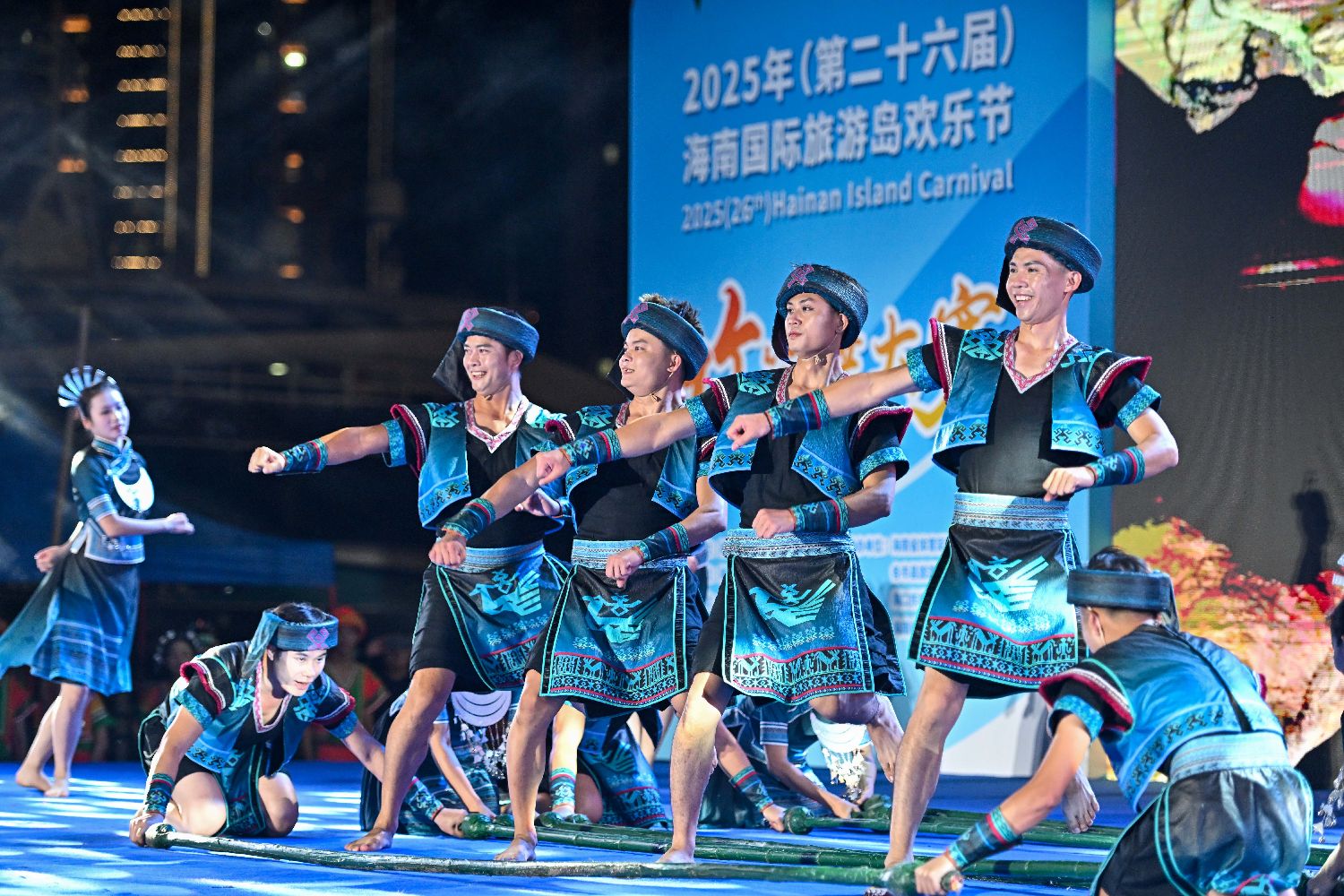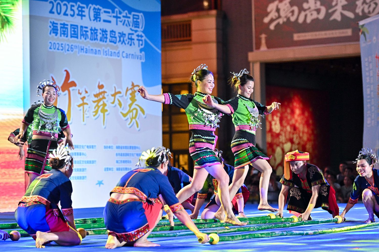 2025年海南国际旅游岛欢乐节竹竿舞大赛在海口举行。