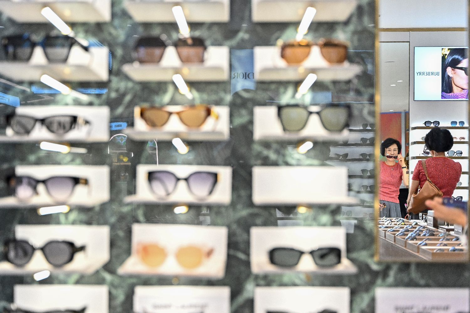 消费者在免税店内挑选商品。