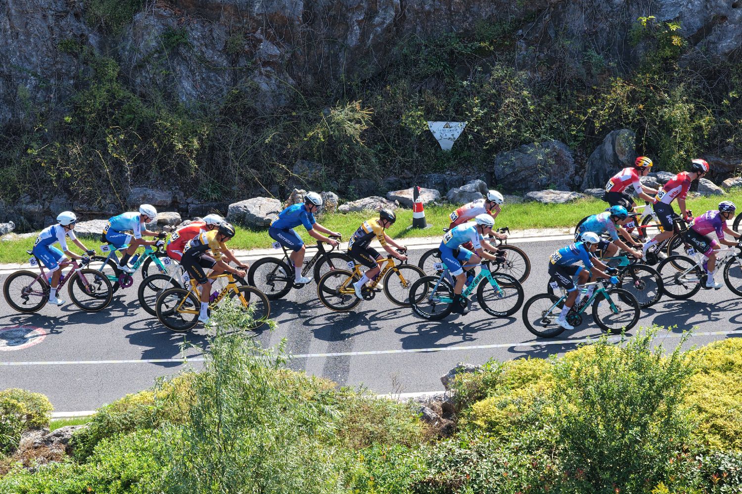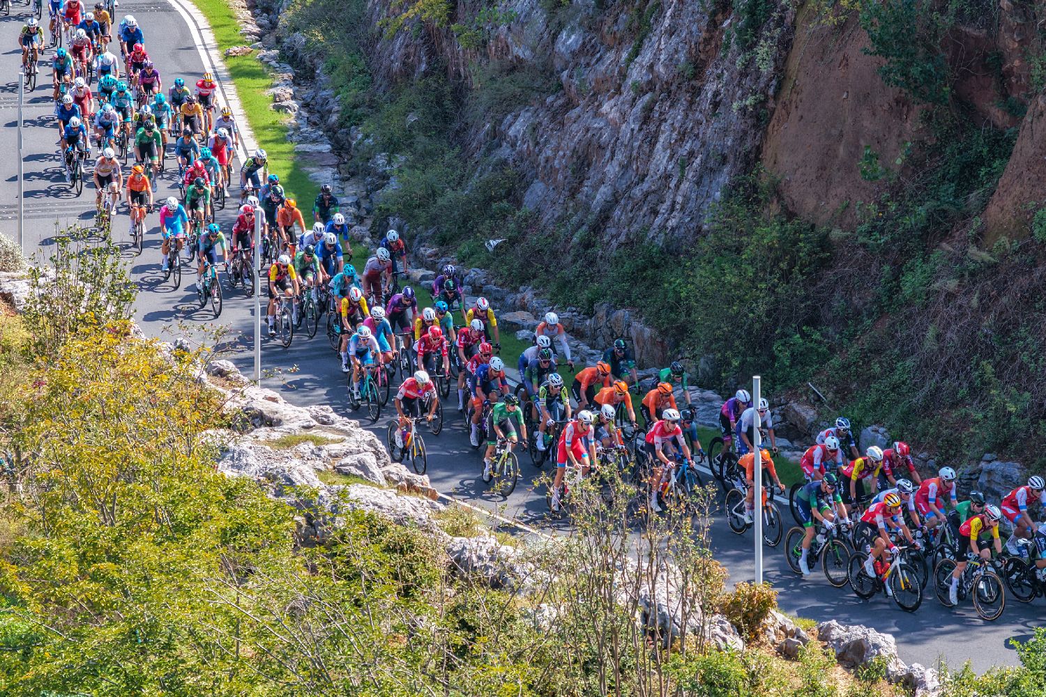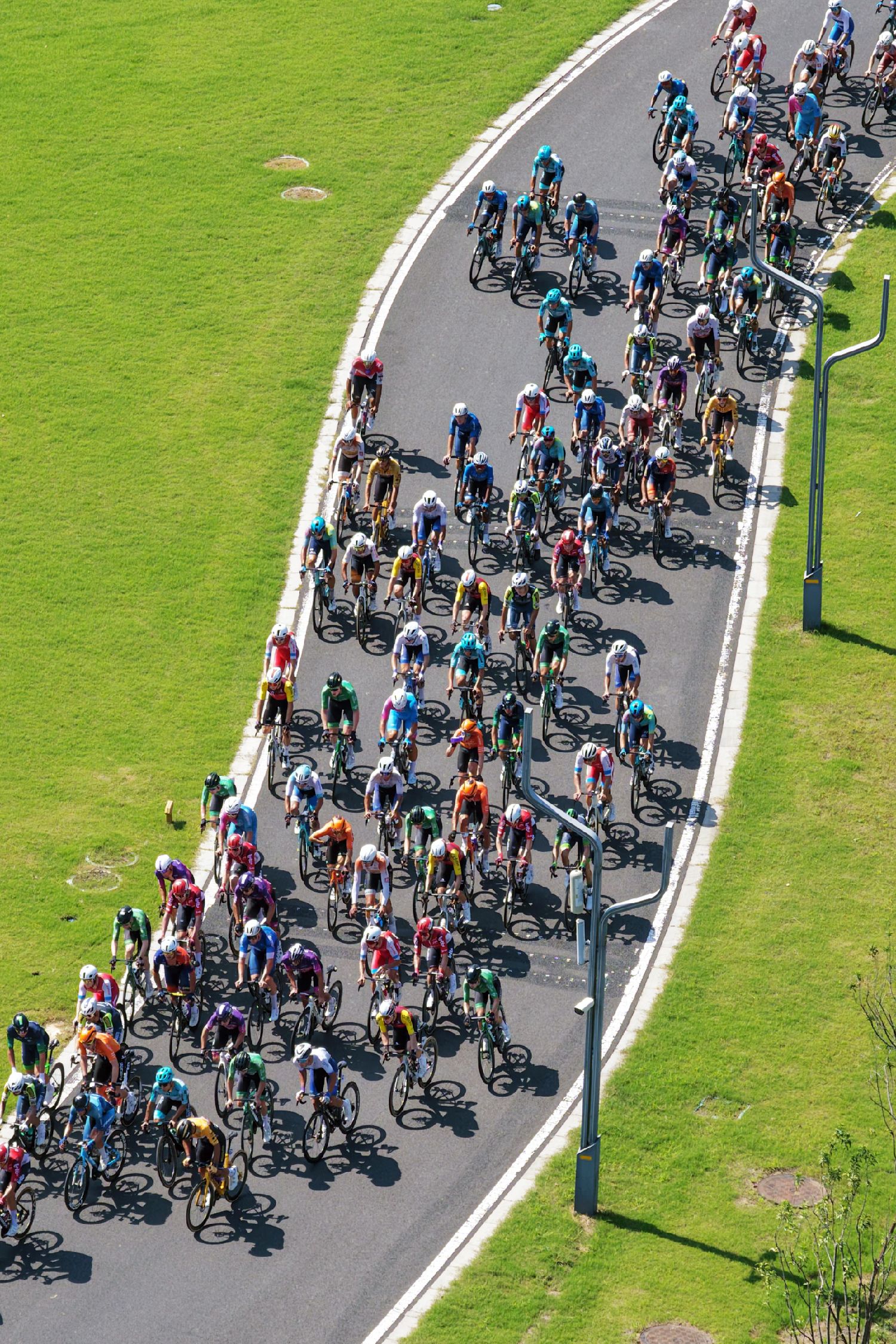 参赛车手在赛道上骑行。(无人机照片)