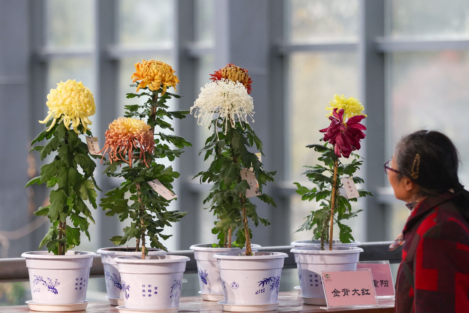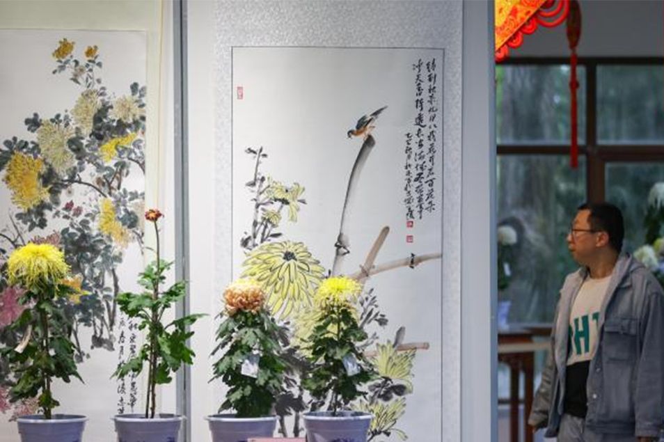 11月17日,江苏南京,市民欣赏展出的菊花盆景。