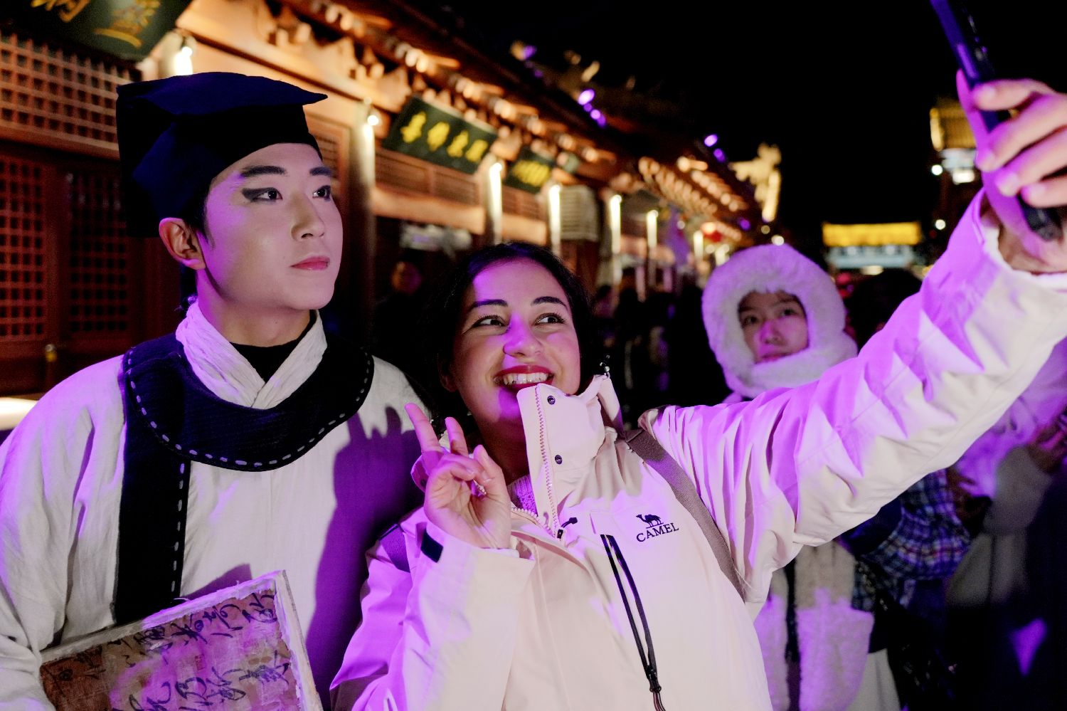 11月18日,2025“打卡中国·潮涌东方——你好,河南!”网络国际传播活动在河南省开封市启动。来自巴西、埃及、老挝、墨西哥、泰国等国家的网络博主走进开封府景区,观看大宋夜游《南衙千秋月》剧目。
