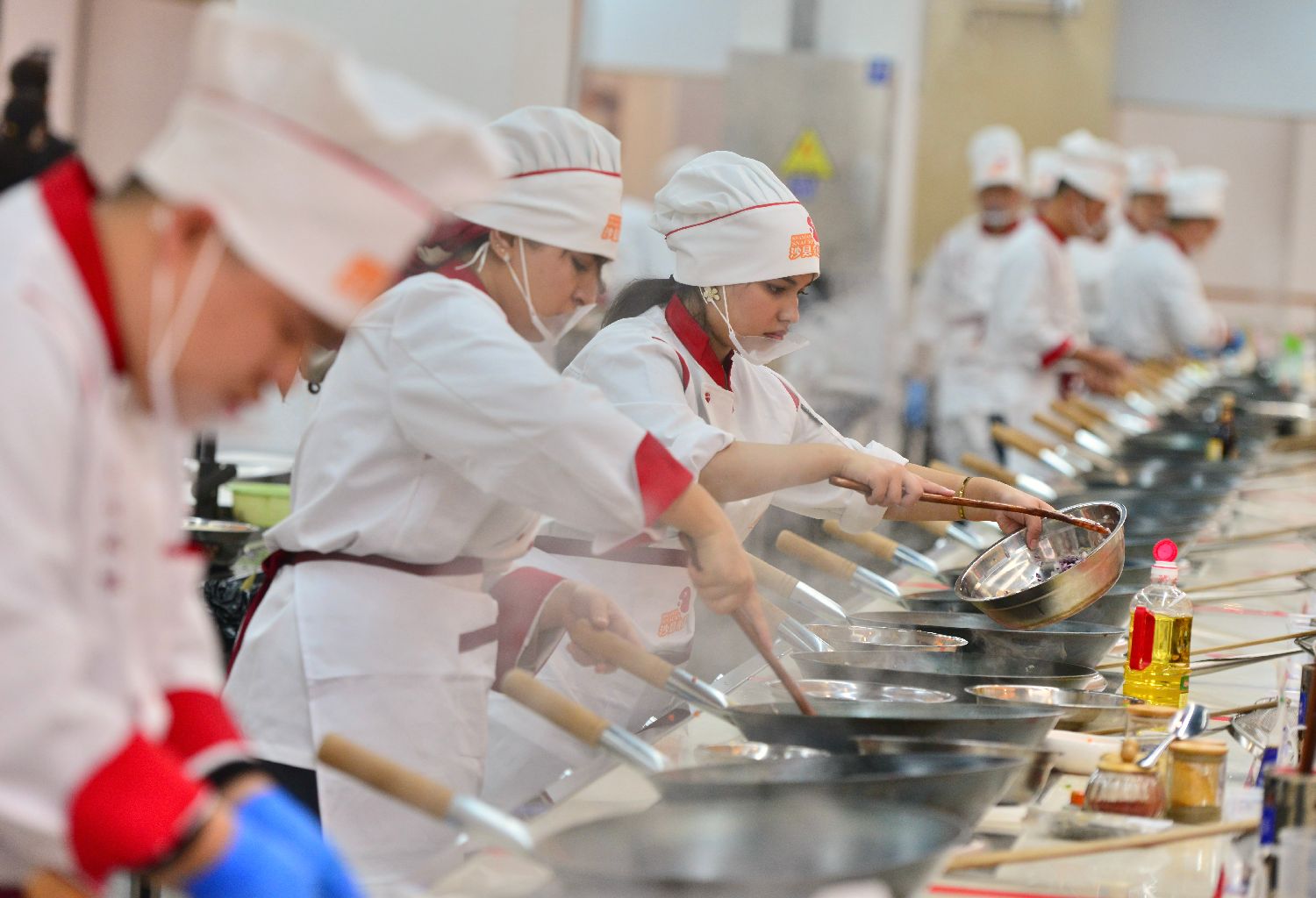 参赛队伍在制作菜品。