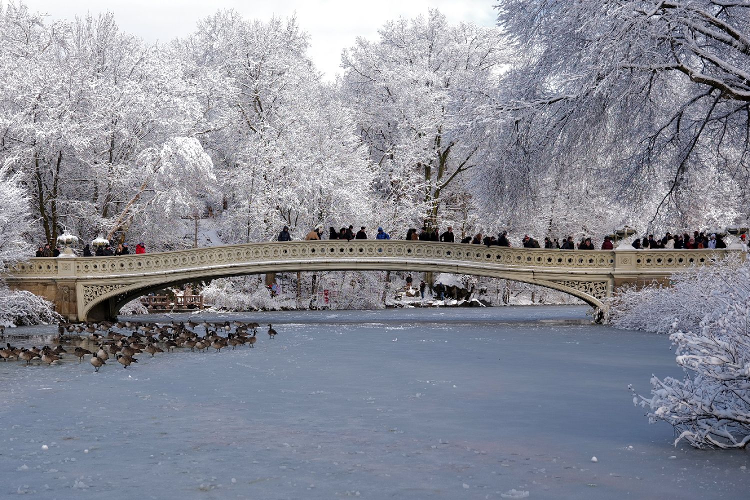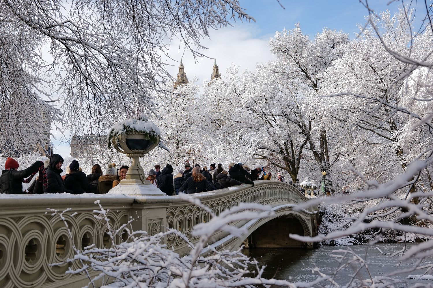中央公园雪后美景吸引民众游玩。