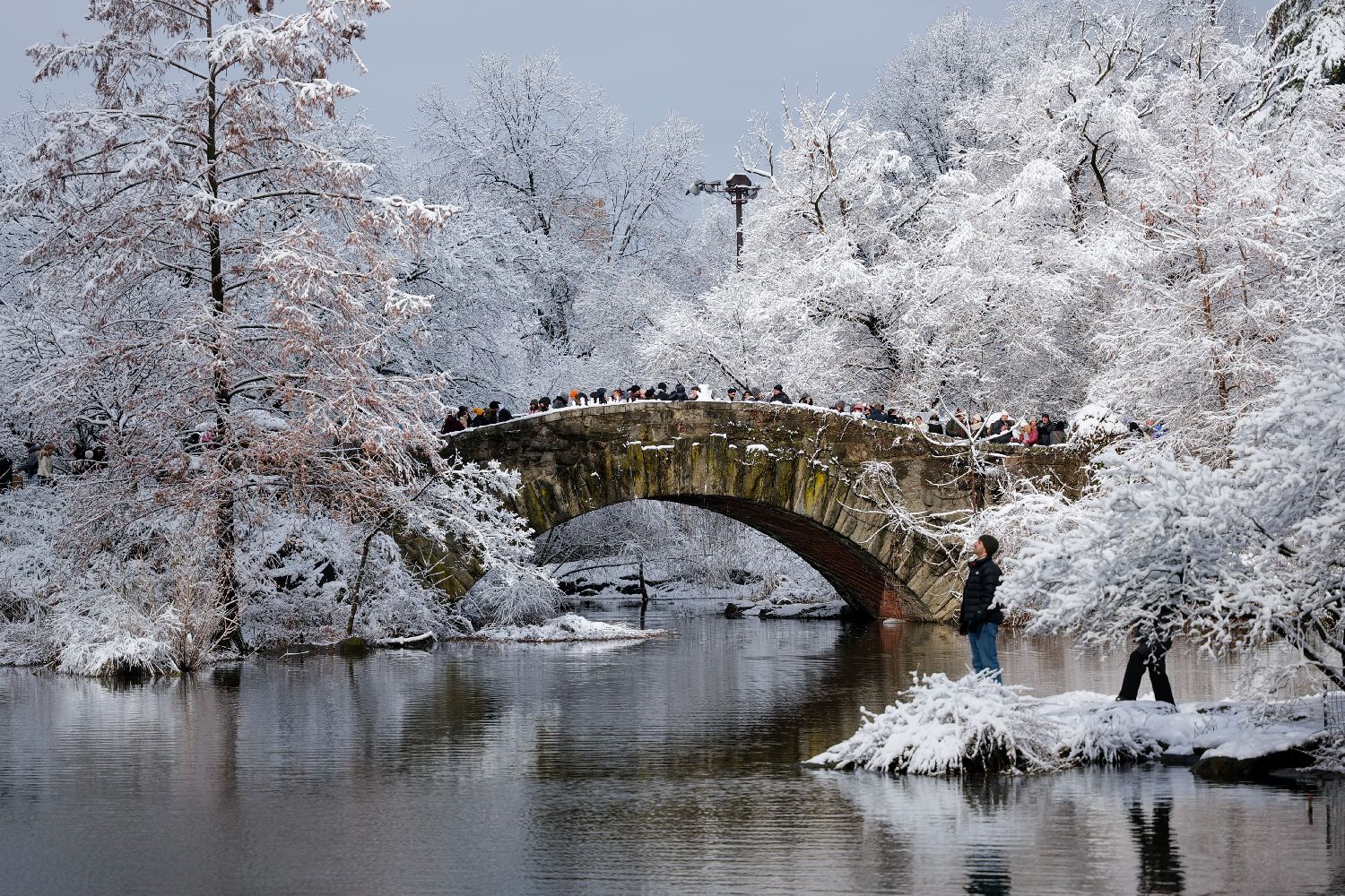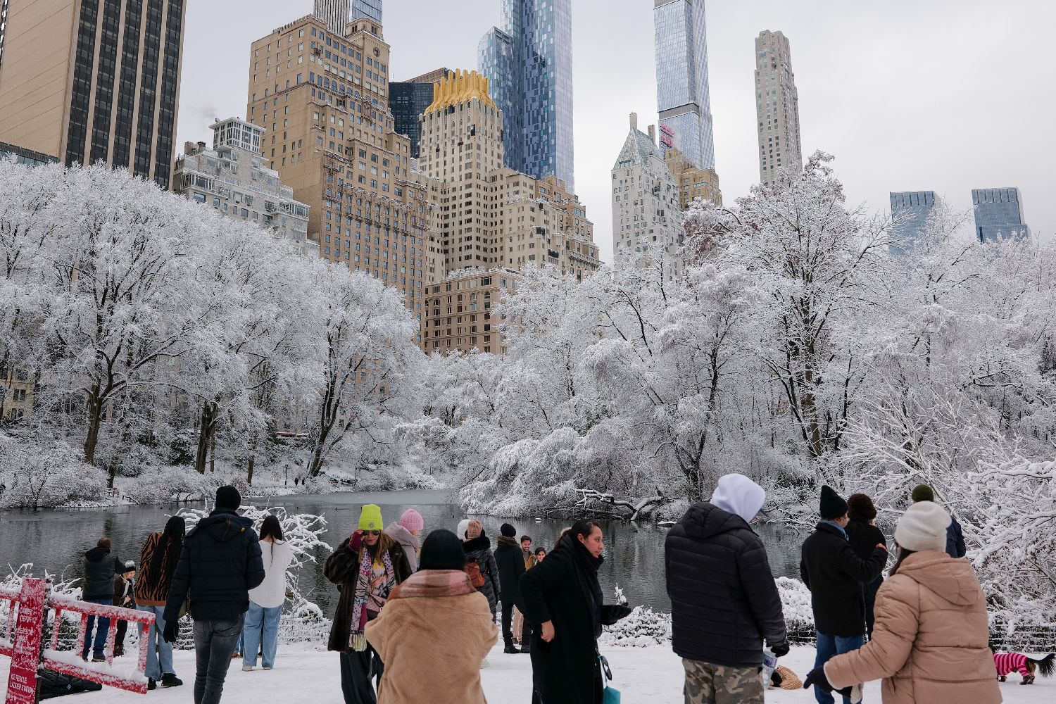 纽约迎来今冬首场大雪,民众欣赏雪后美景。