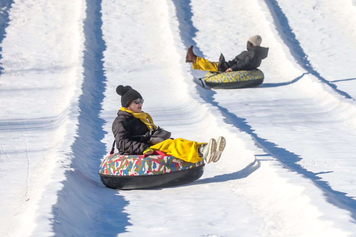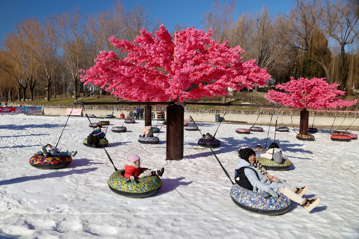 25日,北京陶然亭公园体验“雪上飞碟”项目吸引民众体验。