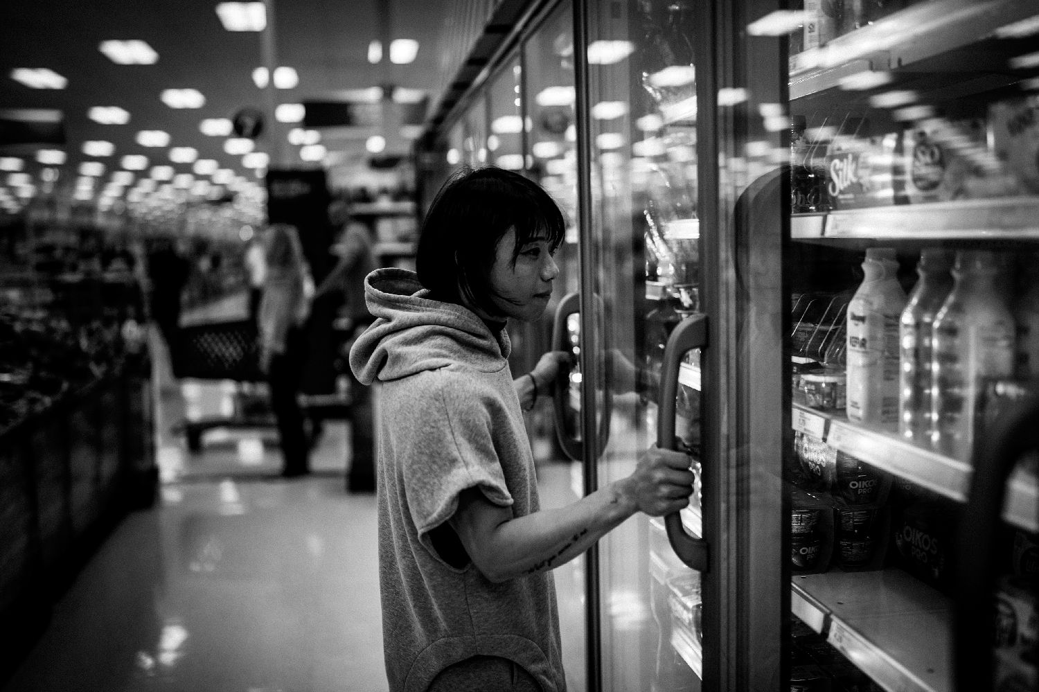 11月6日,严格的备赛饮食控制使得康春米在超市冷柜前垂涎。当日,她抵达得克萨斯州圣马科斯参加她在美国的第5场职业健美赛事。
