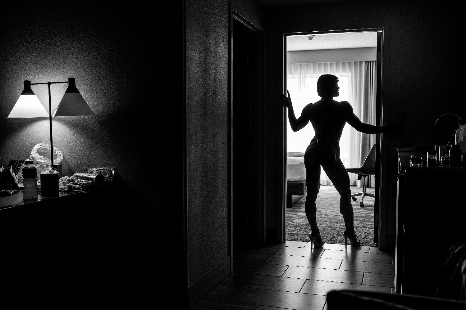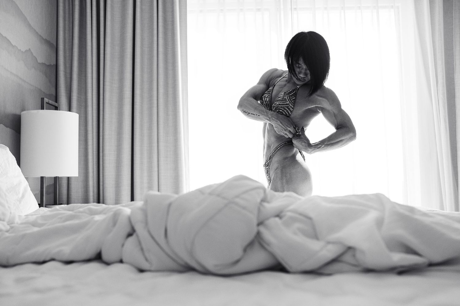 11月7日,得克萨斯州圣马科斯,康春米在赛事酒店房间中。康春米最初的职业是商场导购员,为了减肥塑形在健美这条道路上越走越专。