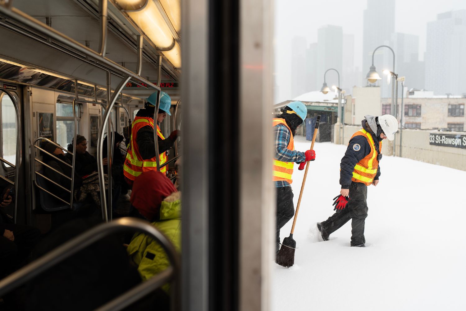 25日,皇后区一个地铁站工作人员维护列车运行。