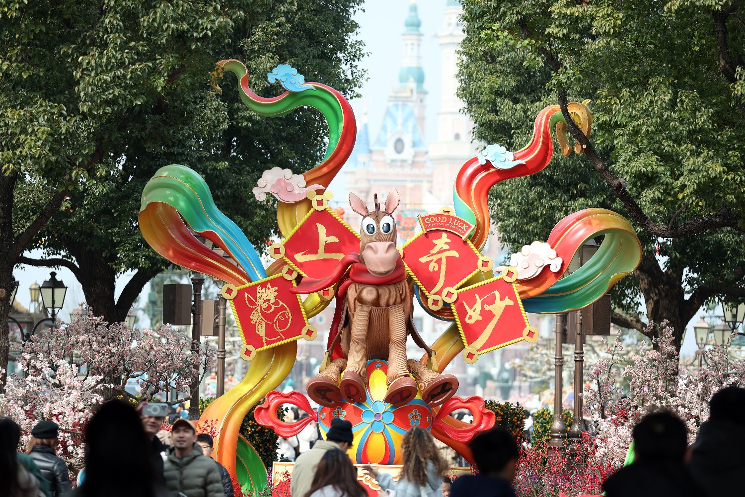 农历马年新春将至,上海迪士尼乐园年味十足。