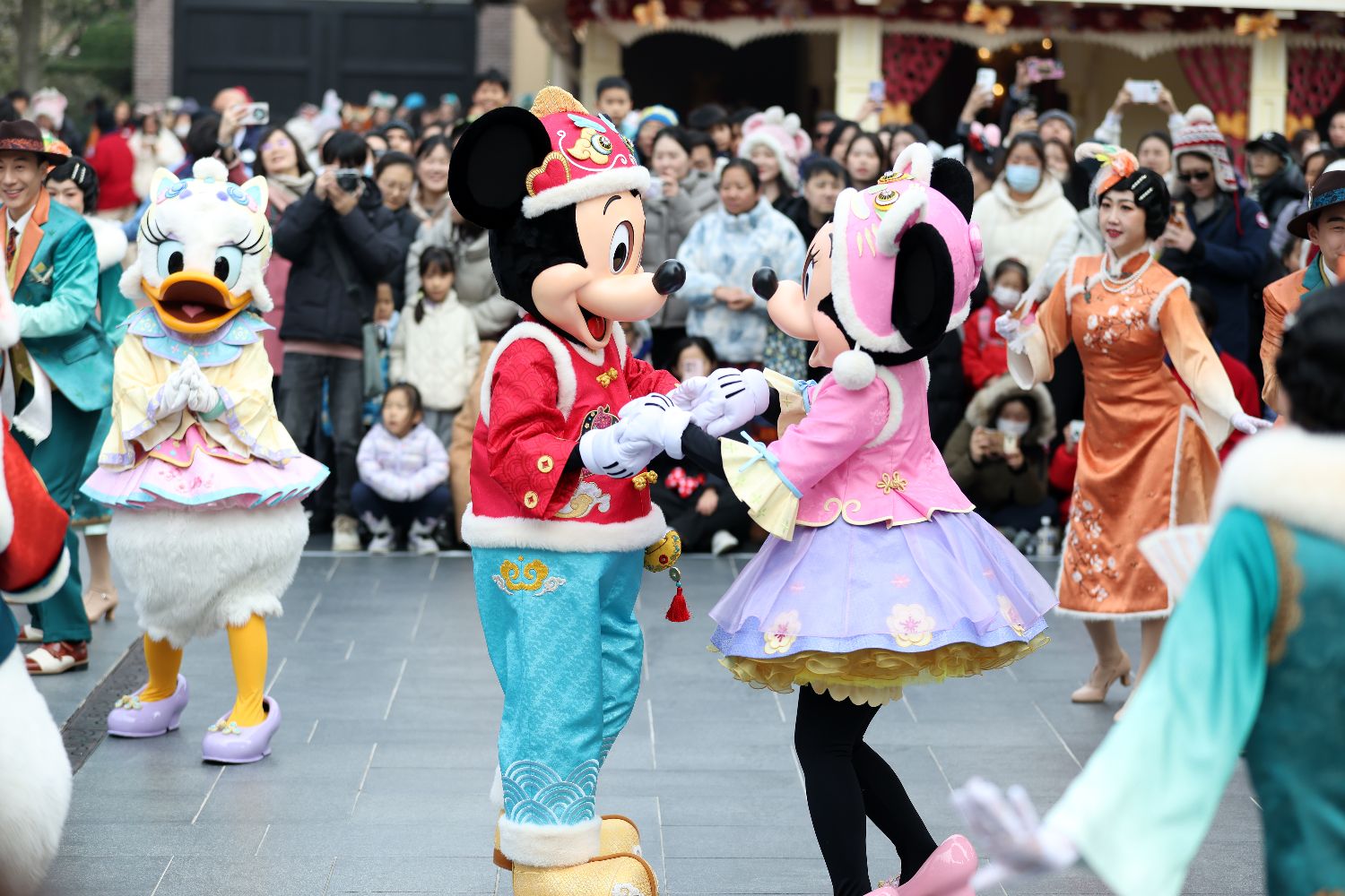 2日,上海迪士尼乐园年味十足。