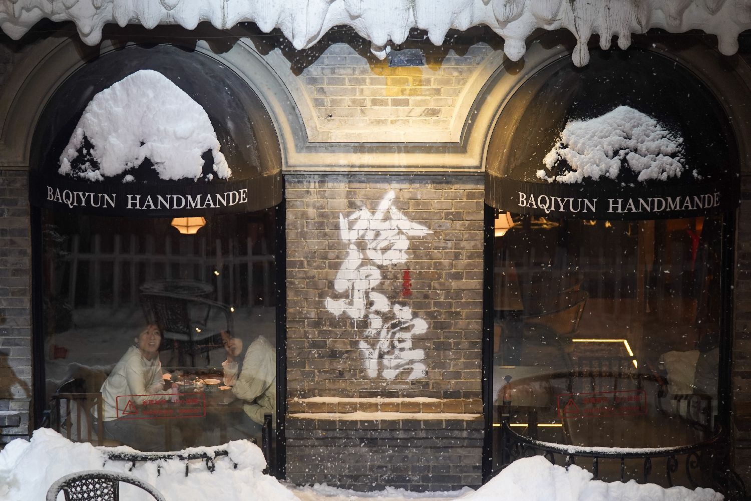 游客10日在飘雪小院的餐厅内欣赏雪景。
