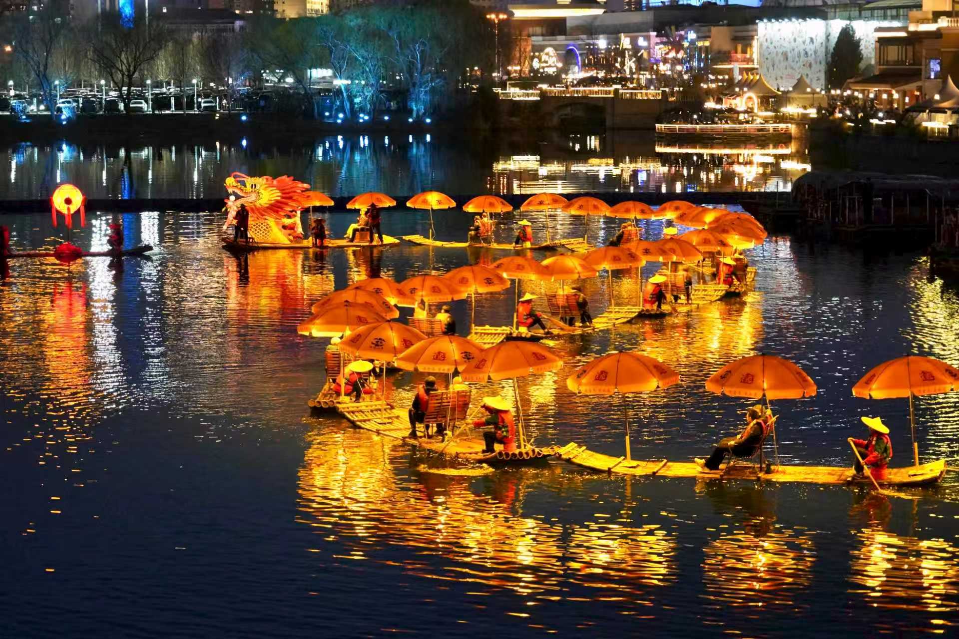 北京亮马河迎来阳朔非遗金龙夜游