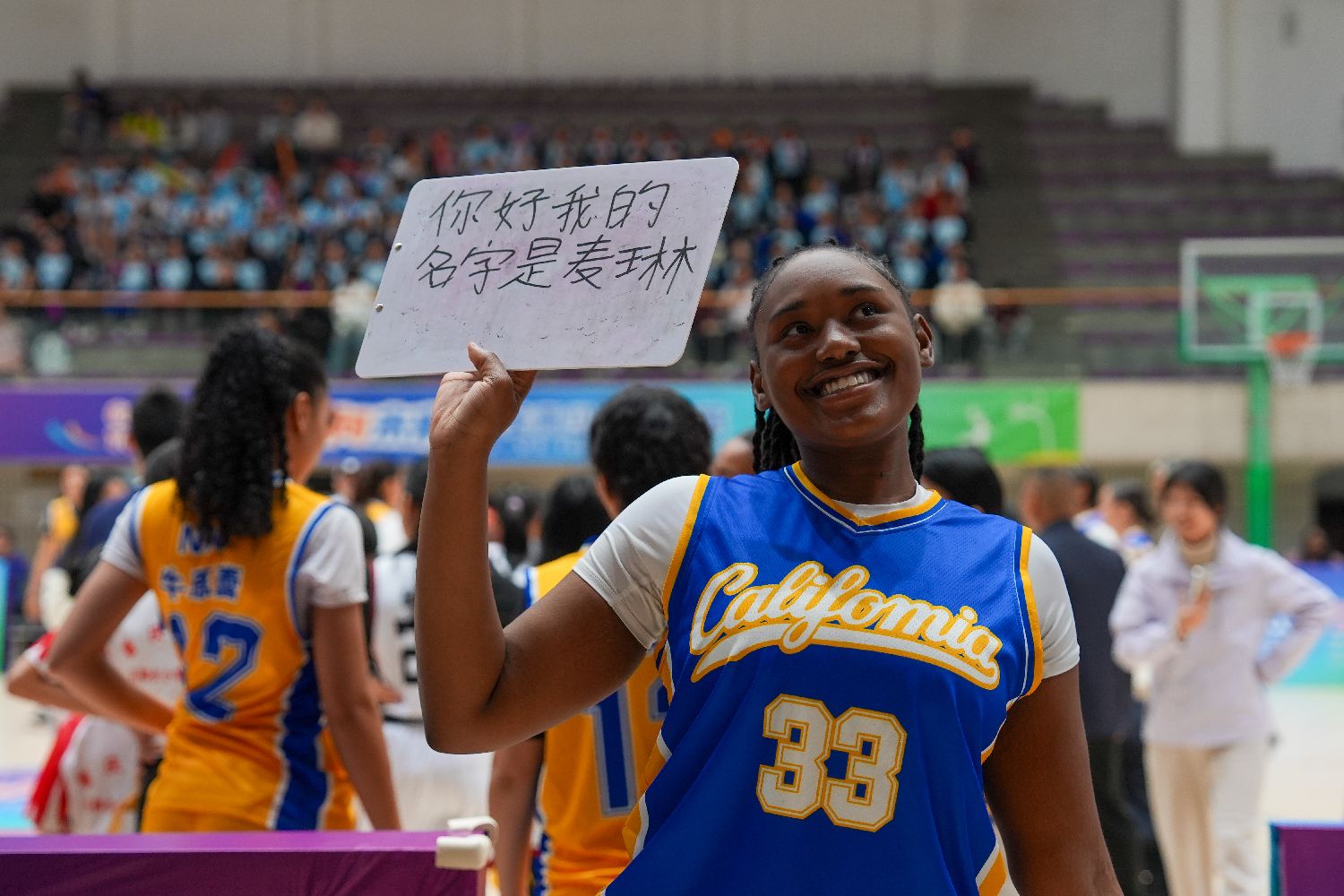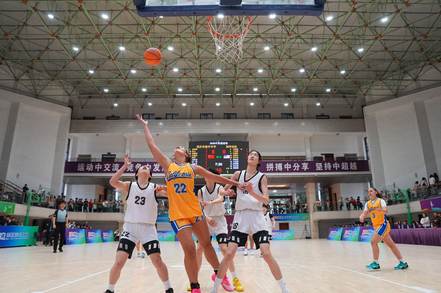 图为加州金队(黄衣)与重庆南开中学女子篮球队进行友谊赛。
