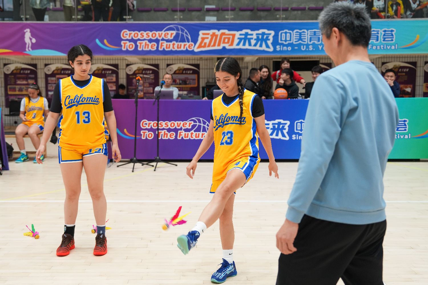 3月30日,来渝参加2026“动向未来——中美青少年体育荟”篮球活动的美国加利福尼亚州10所中学的46名女子篮球队员及教练员,走进重庆市南开中学,与中国学生切磋篮球技艺,并体验踢毽子等中国传统民间体育项目。其间,美国青少年还展示了腰旗橄榄球运动,在多元体育交流中增进了解、深化友谊。