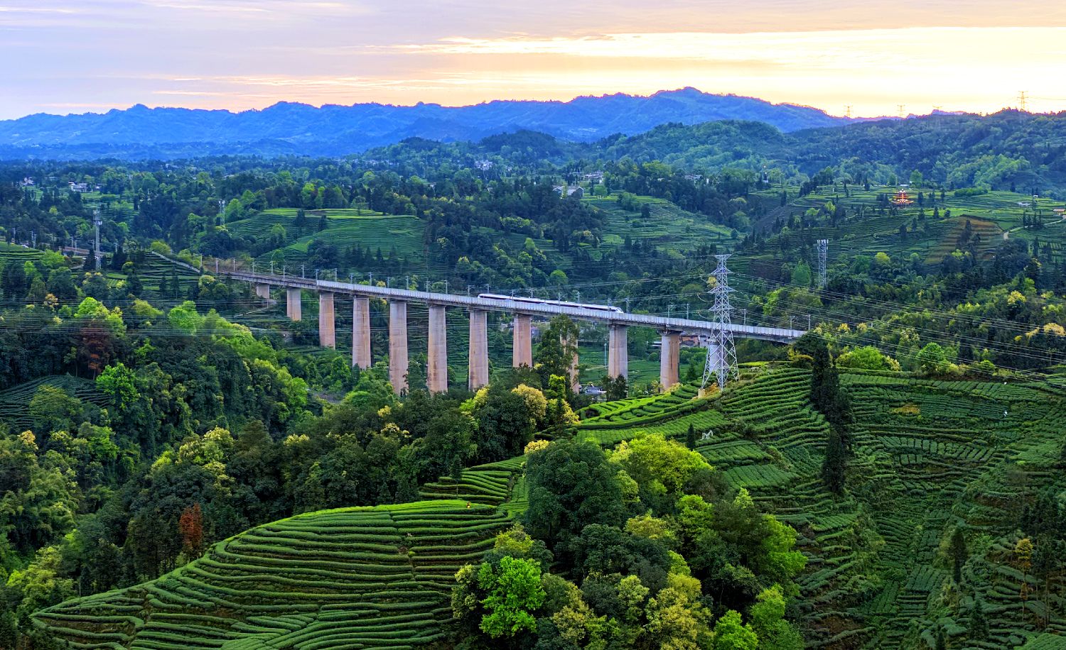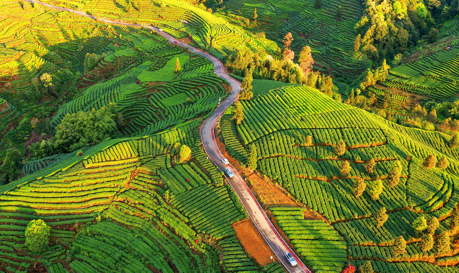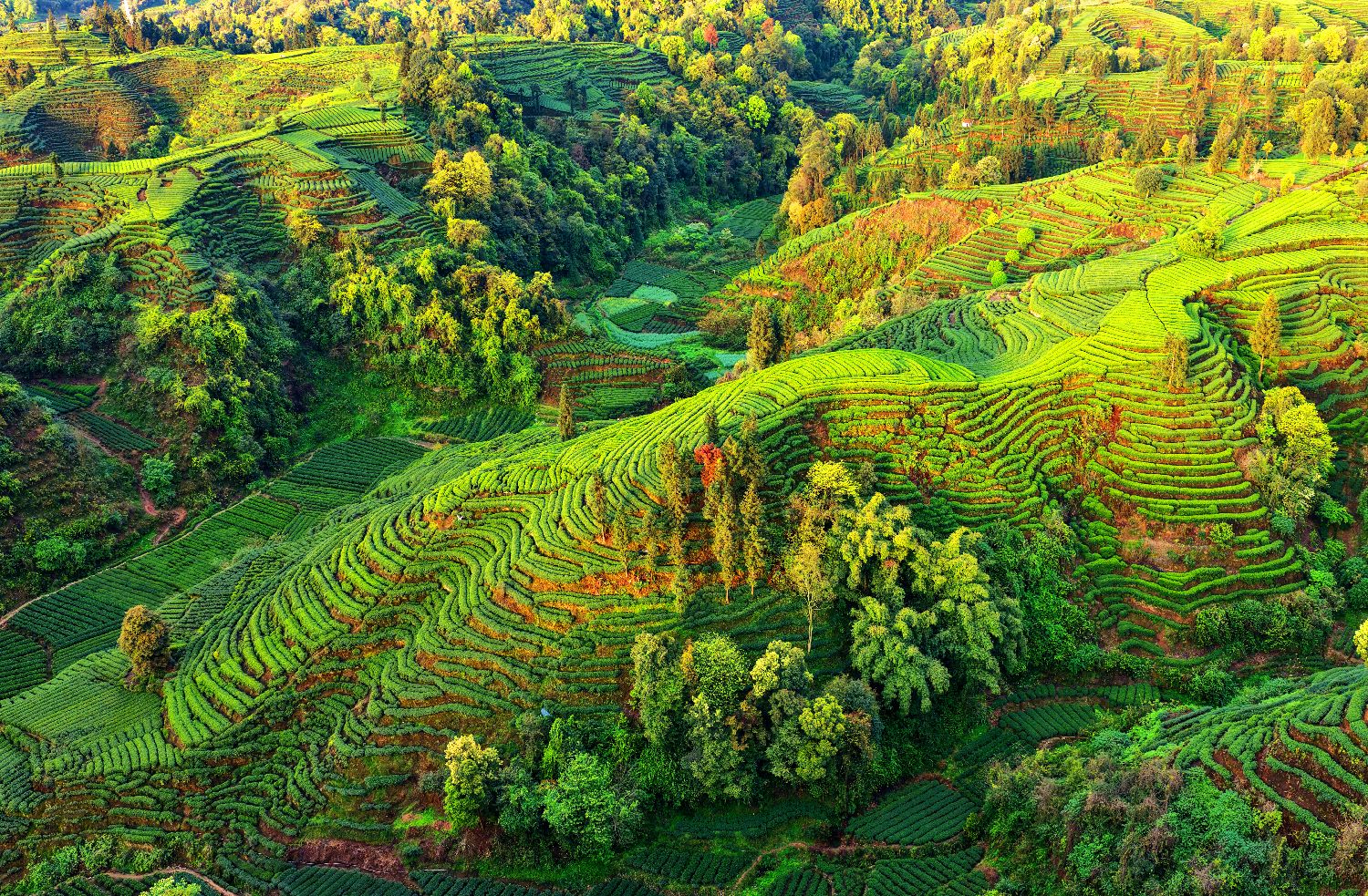 3月31日,在四川省雅安市名山区红星镇长岗山茶园,层叠茶垄如大地指纹舒展,美不胜收。