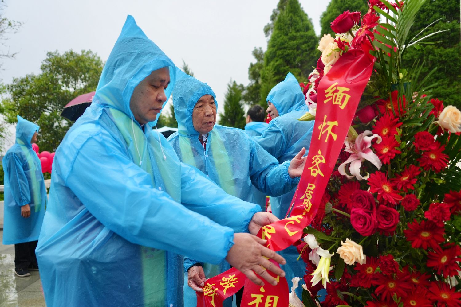 图为客家宗亲代表向中原客家先民南迁圣地纪念碑敬献花篮。