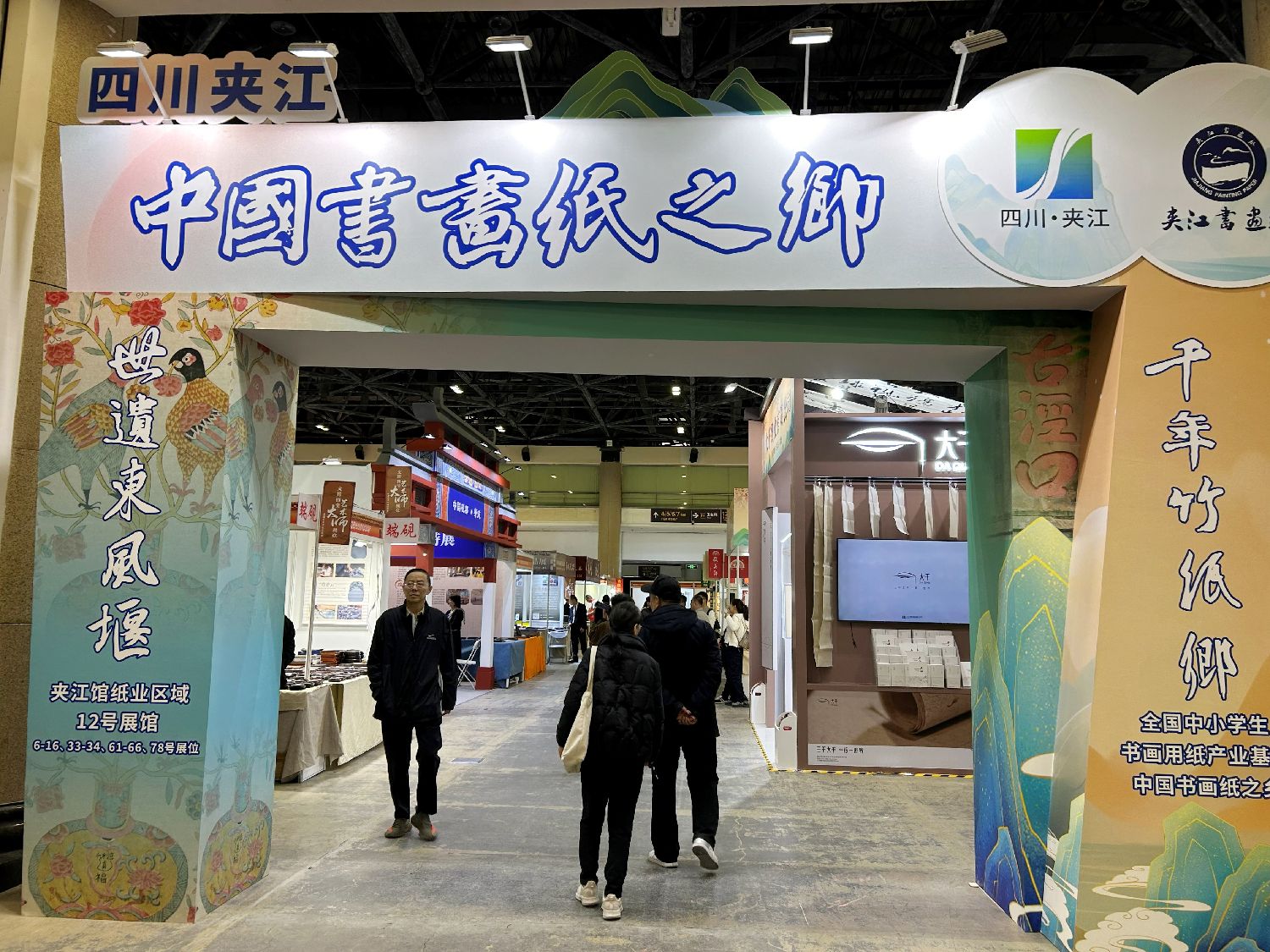 图为来自“四川夹江•中国书画纸之乡”的展位前人流不断。(楠贝摄)