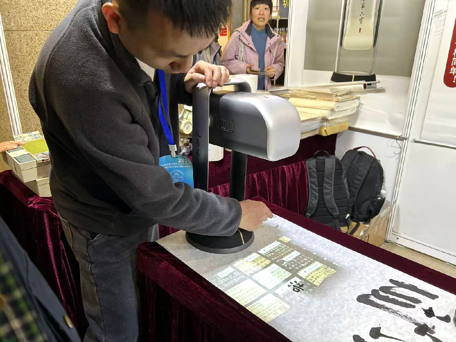 六品堂推出的“文房第六宝”书法学习设备,通过投影将海量碑帖、名师示范等内容投射到书写纸上,支持视频临摹、智能纠错与跟练,帮助书法学习者更轻松地练习书法。