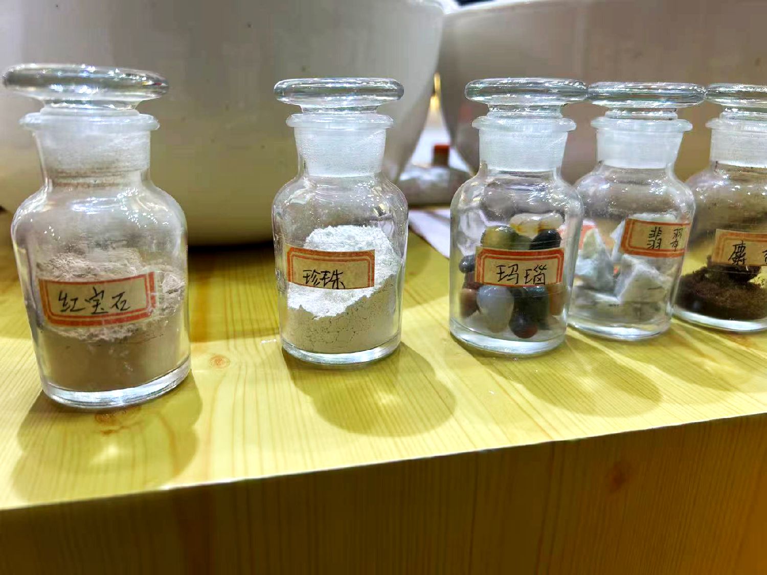 中华老字号——一得阁展出的非遗印泥工艺原料,是制作传统八宝印泥的核心名贵辅料。(楠贝摄)
