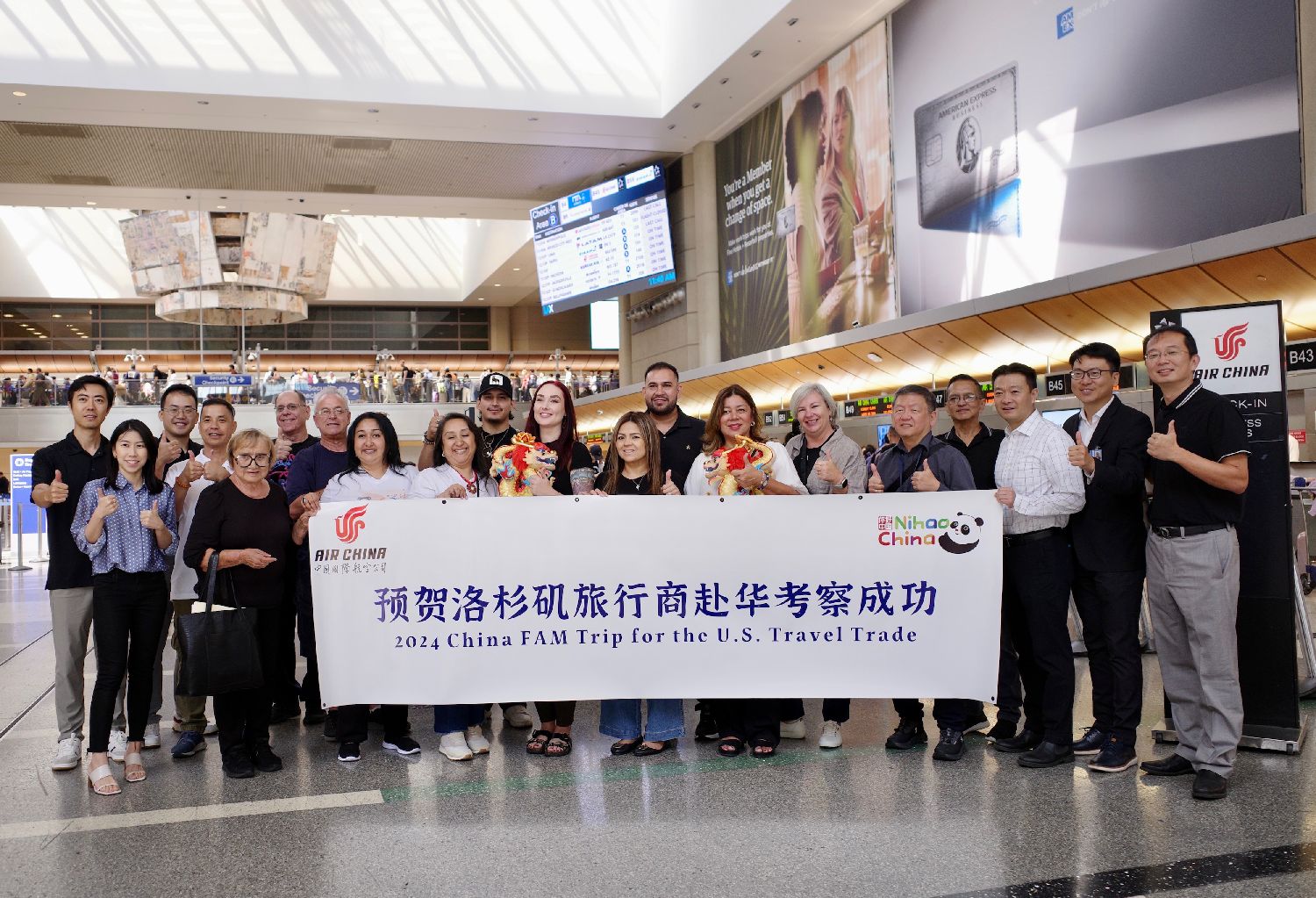 中国驻洛杉矶旅游办事处主任吴大伟表示,为积极拓展美国赴华旅游市场,巩固第14届中美旅游高层对话成果,中国驻洛杉矶旅游办事处与国航共同邀请17名洛杉矶地区旅游代理商赴中国,访问经典线路北京、西安、长江三峡、上海等地。除考察住宿、餐饮、景点等接待设施外,该团还将重点体验国航通程登机、行李直挂、中转衔接等优质服务,以及外国人在华支付便利化措施和高铁等基础设施。