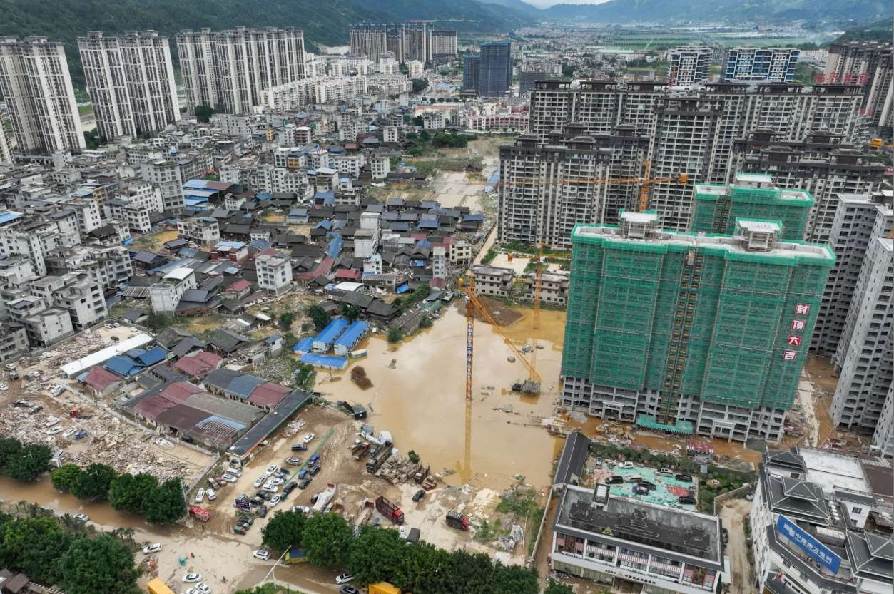 6月27日,航拍洪灾后的贵州榕江县城。(图片来源:中新社)