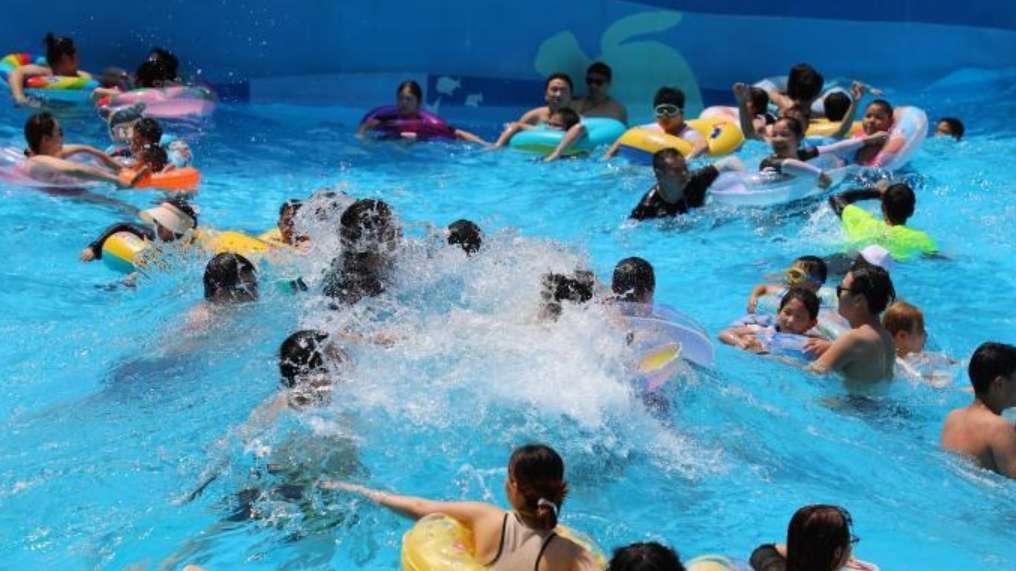 民众在水上乐园玩水冲浪。(图片来源:中新网)