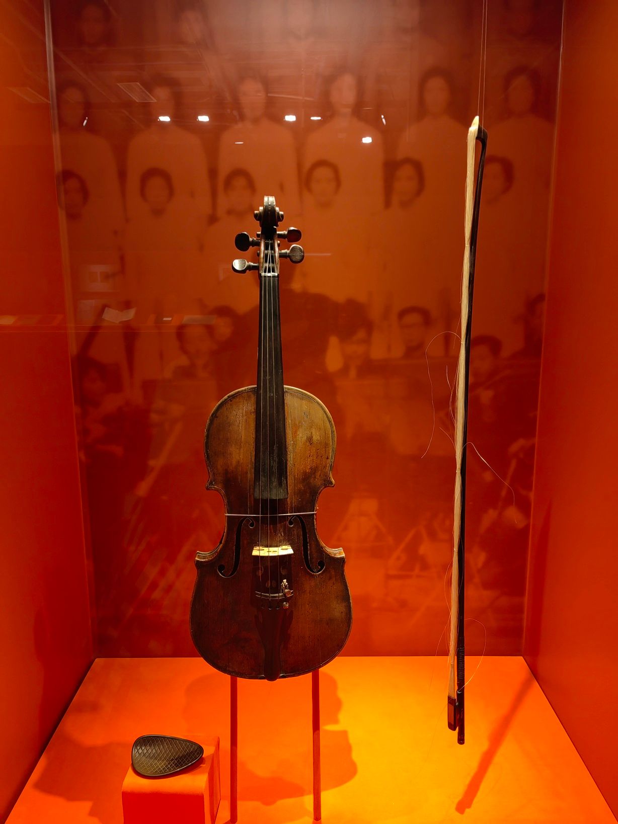 7月16日,“烽火艺魂——中国艺术研究院抗战文艺典藏展”在北京开幕,图为现场展出冼星海用过的小提琴。(图片来源:中新社)