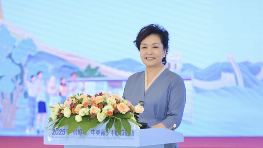 17日,彭丽媛在全国对外友协出席2025年“鼓岭缘”中美青少年联谊活动并致辞。(图片来源:新华社)