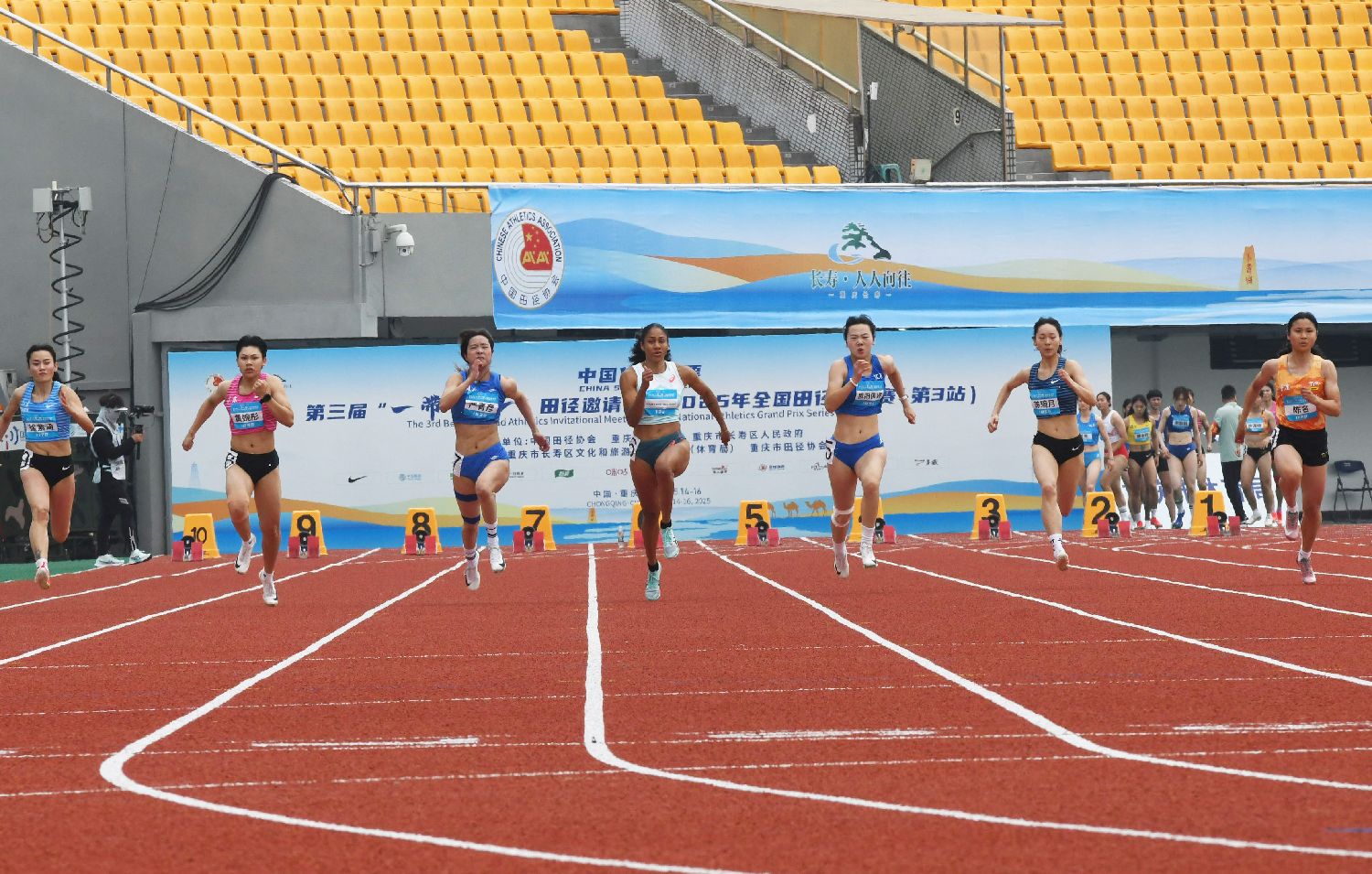 今年5月14日,第三届“一带一路”田径邀请赛暨2025年全国田径大奖赛(第3站)在重庆开赛。据悉,本次比赛为经世界田联认证的银级赛事,参赛运动员规模达1200余人。图为女子100米项目预赛现场。(图片来源:中新社)